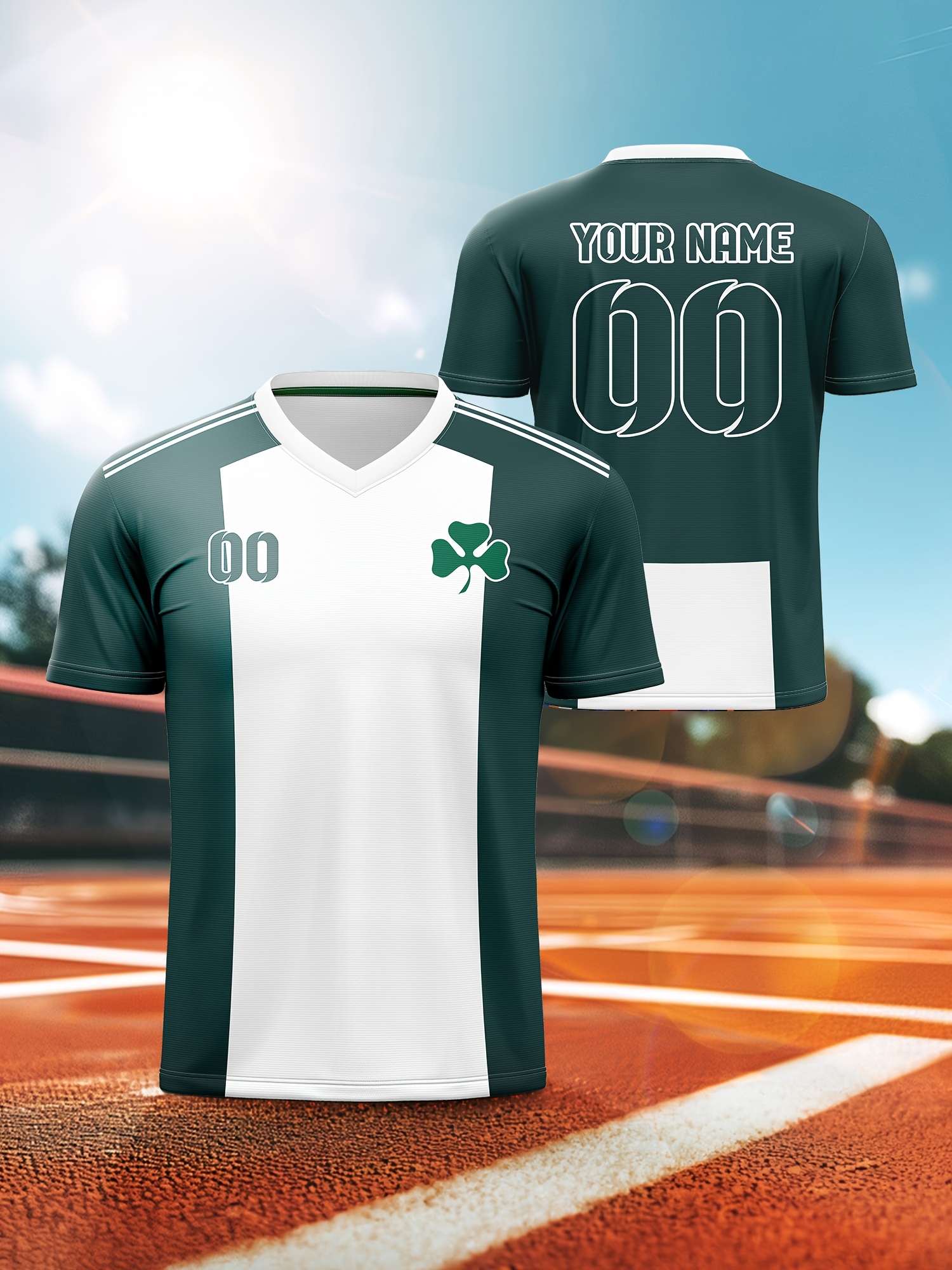 1pc Customizable Kids Soccer Jersey T-Shirt, V-Neck Polyester Knit with Full Print Design, Casual Sports Streetwear for Boys and Girls, Preppy Style for Beach, Parties, and Outdoor Activities - Spring/Summer/Autumn