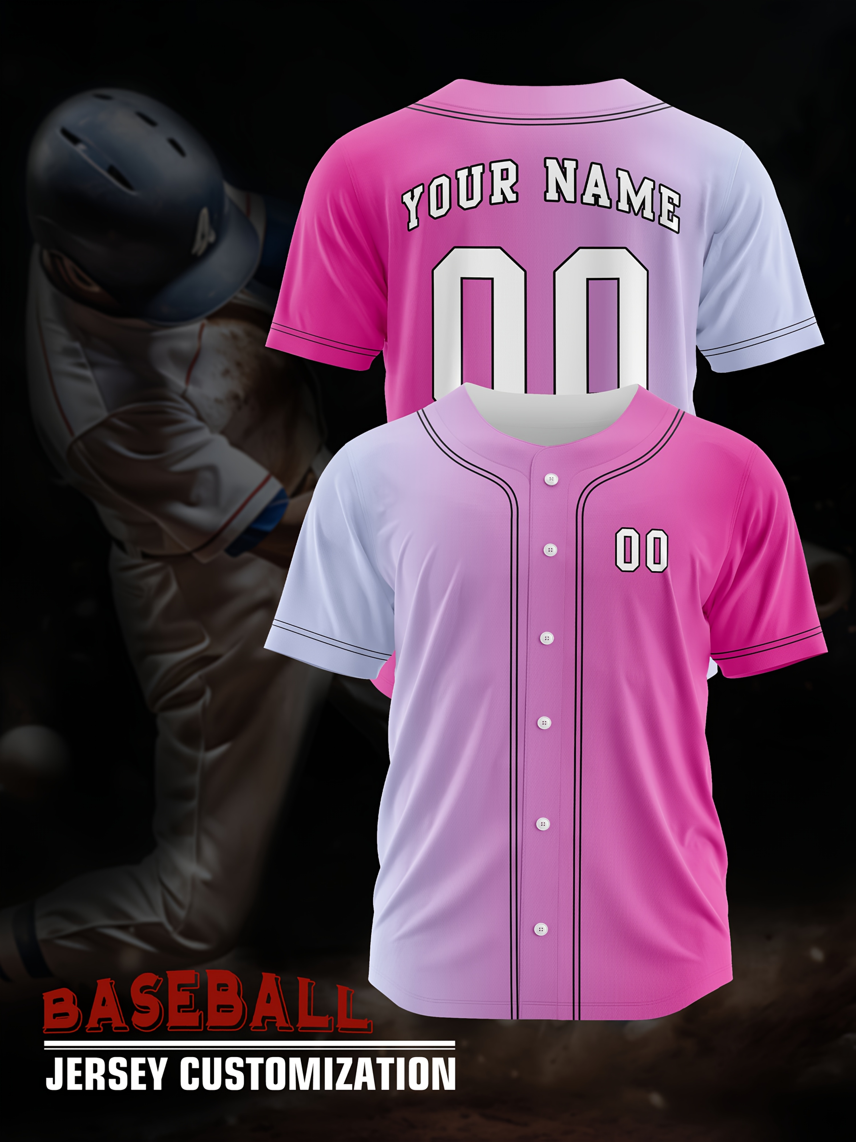 Customizable Youngsters' Baseball Jersey - Personalized Name & Number, Light Purple to White Gradient Design, Breathable Polyester, Perfect for Sports Training, Parties & Casual Wear, Youth Sports Apparel | Outdoor Activity Shirt | Durable Sports Jersey