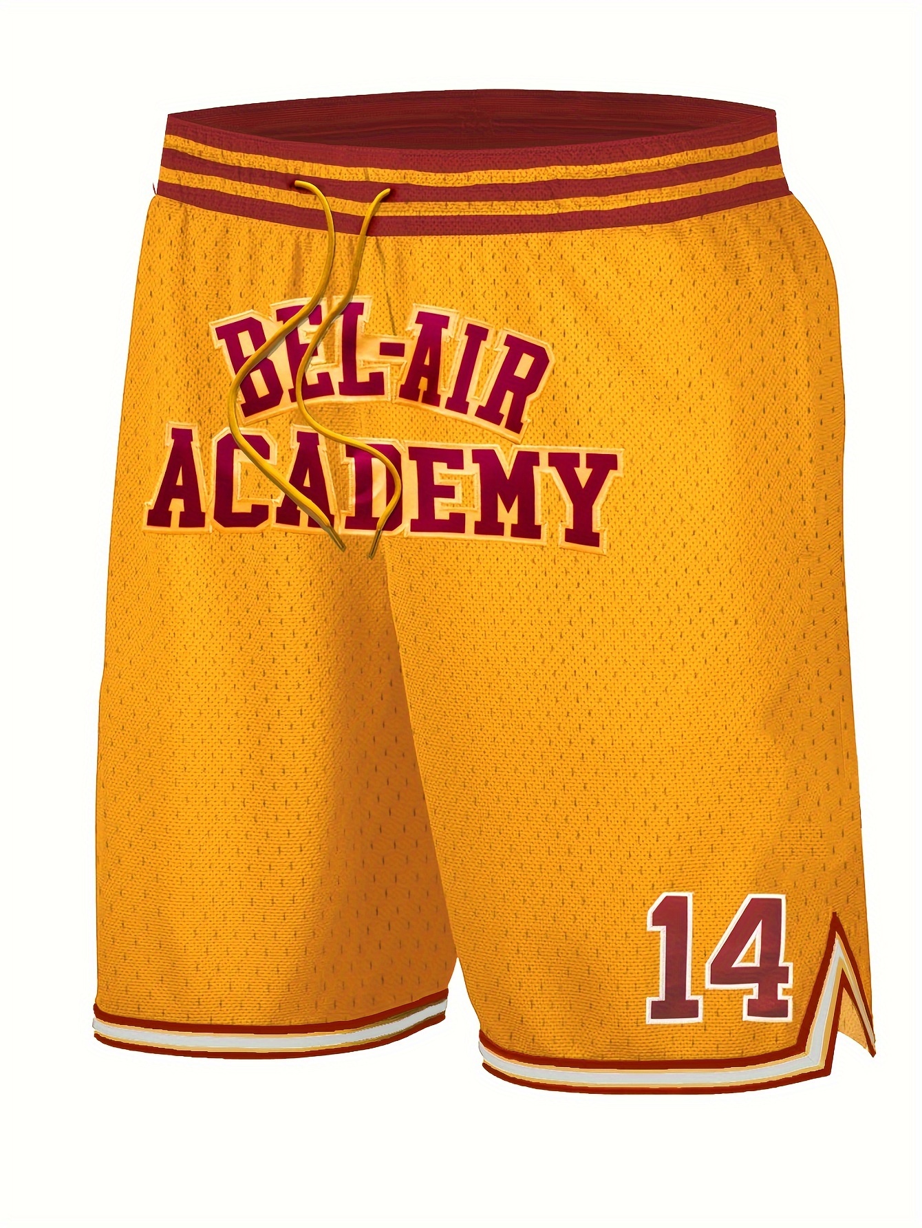 Men's Yellow # 14 Basketball Shorts, Classic Letter Embroidery Design, Breathable Button Style Short Sleeve Shirt, Suitable For Training And Competition