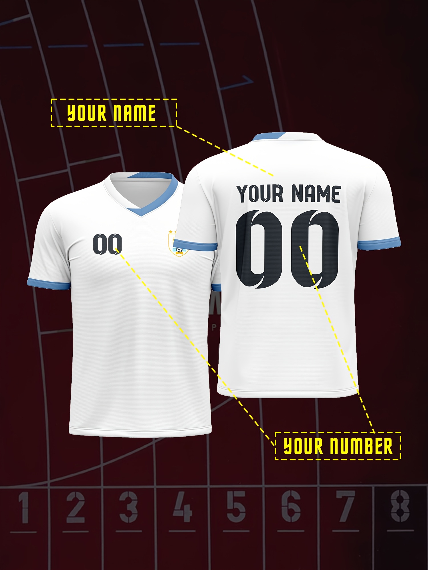1pc Customizable Soccer Jersey for Kids - Personalized Name & Number, V-Neck, Knit Polyester, All-Season Sports & Casual Top for Boys & Girls, Preppy Street Style, Medium Stretch, Party & Beachwear