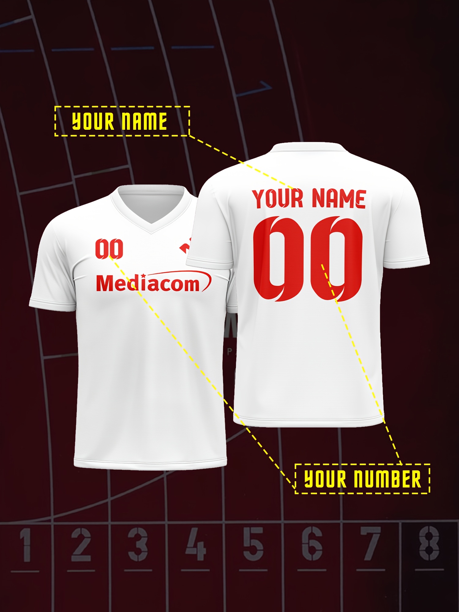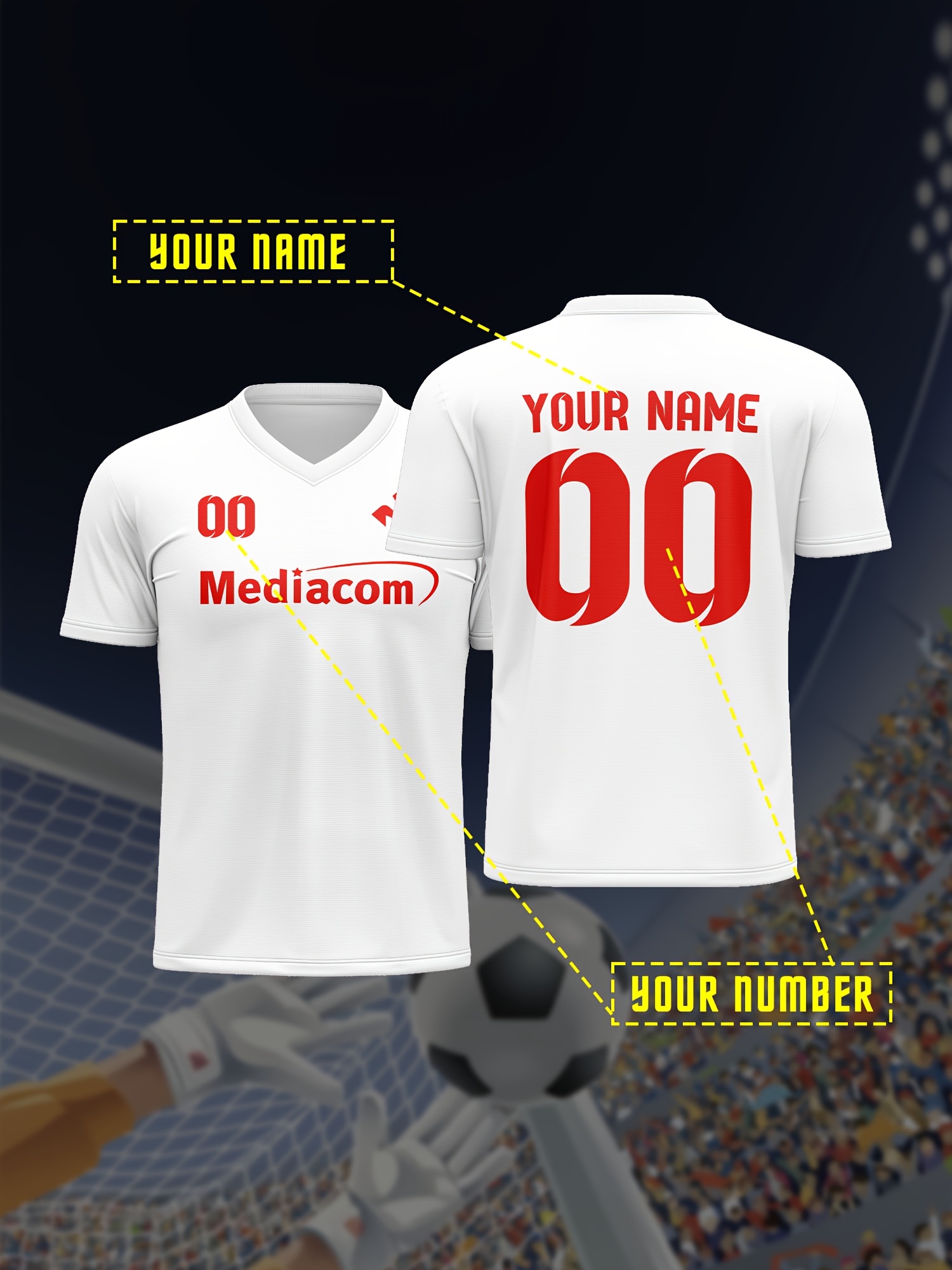 1pc Customizable Soccer Jersey for Kids - Personalized Name & Number, V-Neck, Polyester, Knit Fabric, All-Season Sports & Casual Top for Boys & Girls, Preppy Street Style, Medium Stretch, Regular Fit
