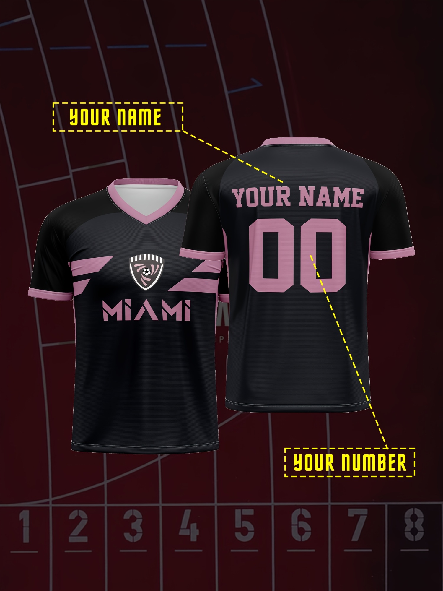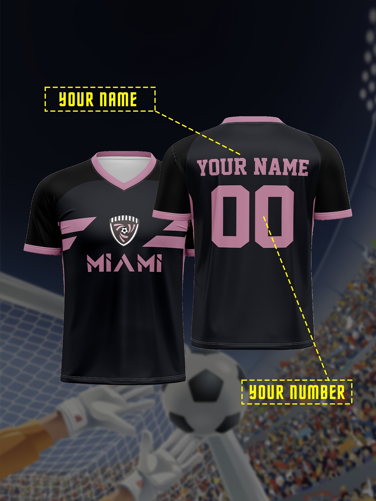 1pc Customizable Soccer Jersey for Kids - Personalized V-Neck Football Shirt with Name & Number, Polyester Knit Fabric, All-Season Sports & Casual Wear, Preppy Street Style, Medium Stretch, for Boys & Girls