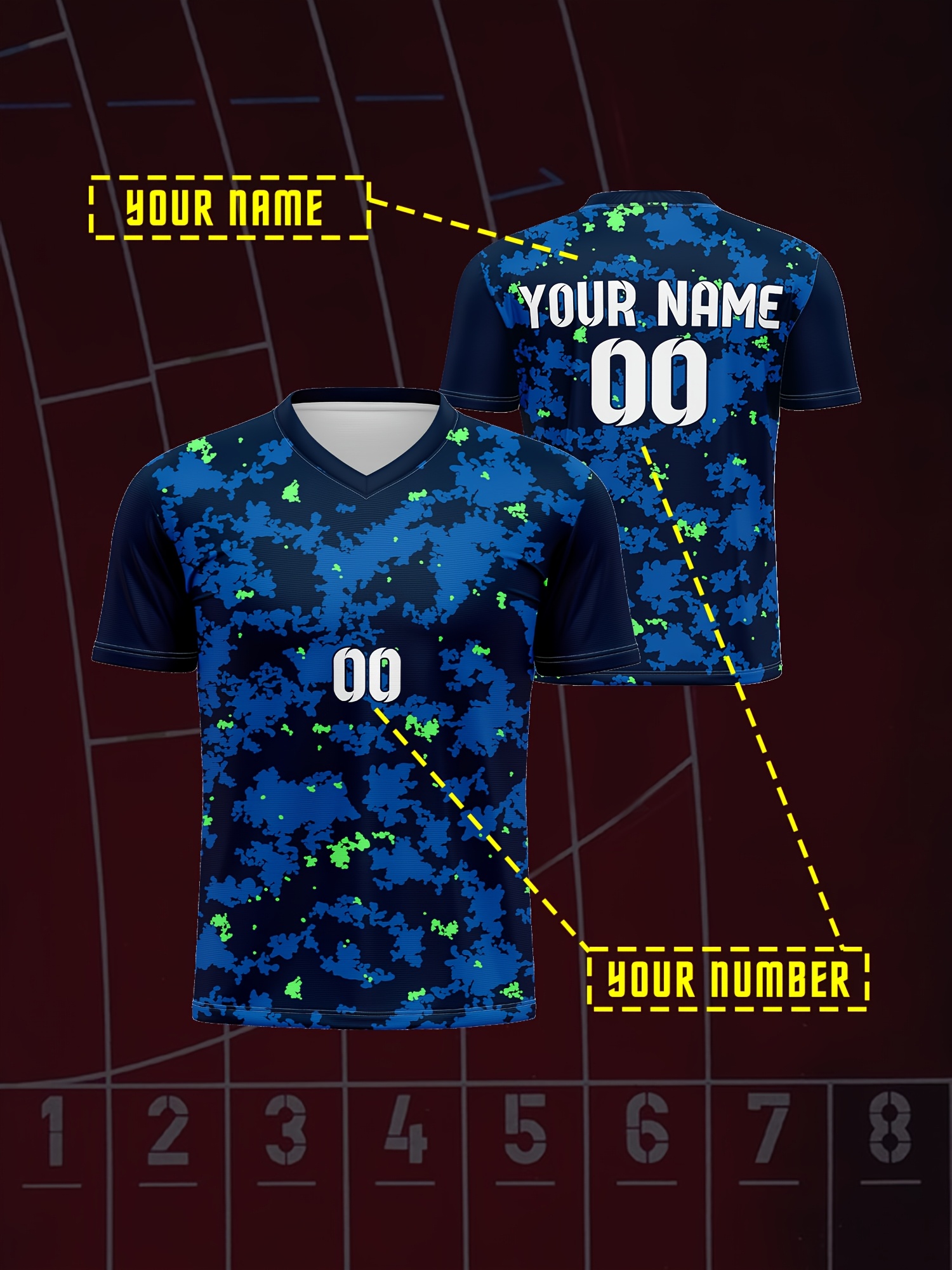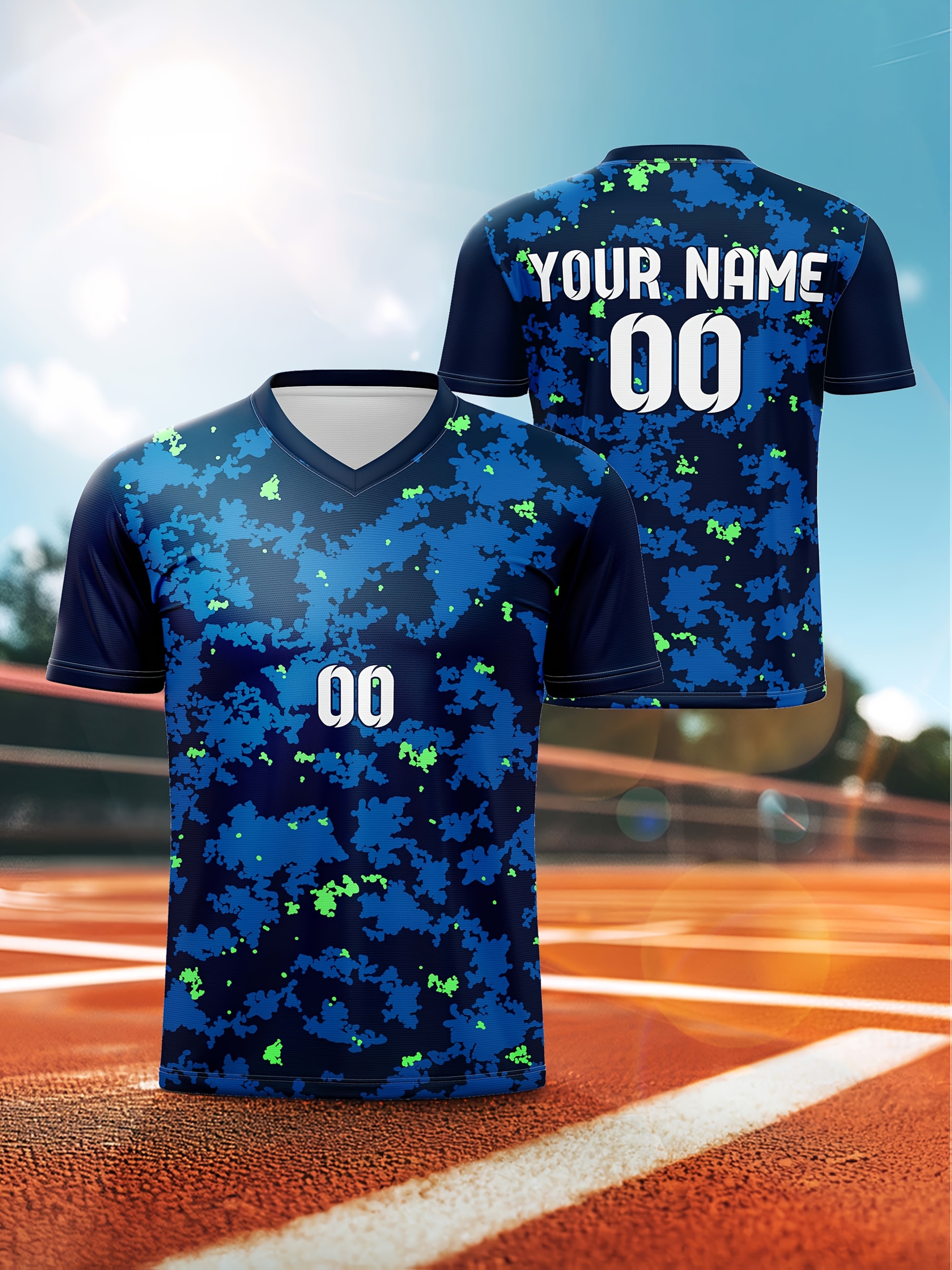 1pc Customizable Soccer Jersey for Kids - V-Neck Football Shirt with Personalized Name & Number, 100% Polyester Knit Fabric, Medium Stretch, Preppy Street Style, All-Season Sports & Casual Top for Boys & Girls
