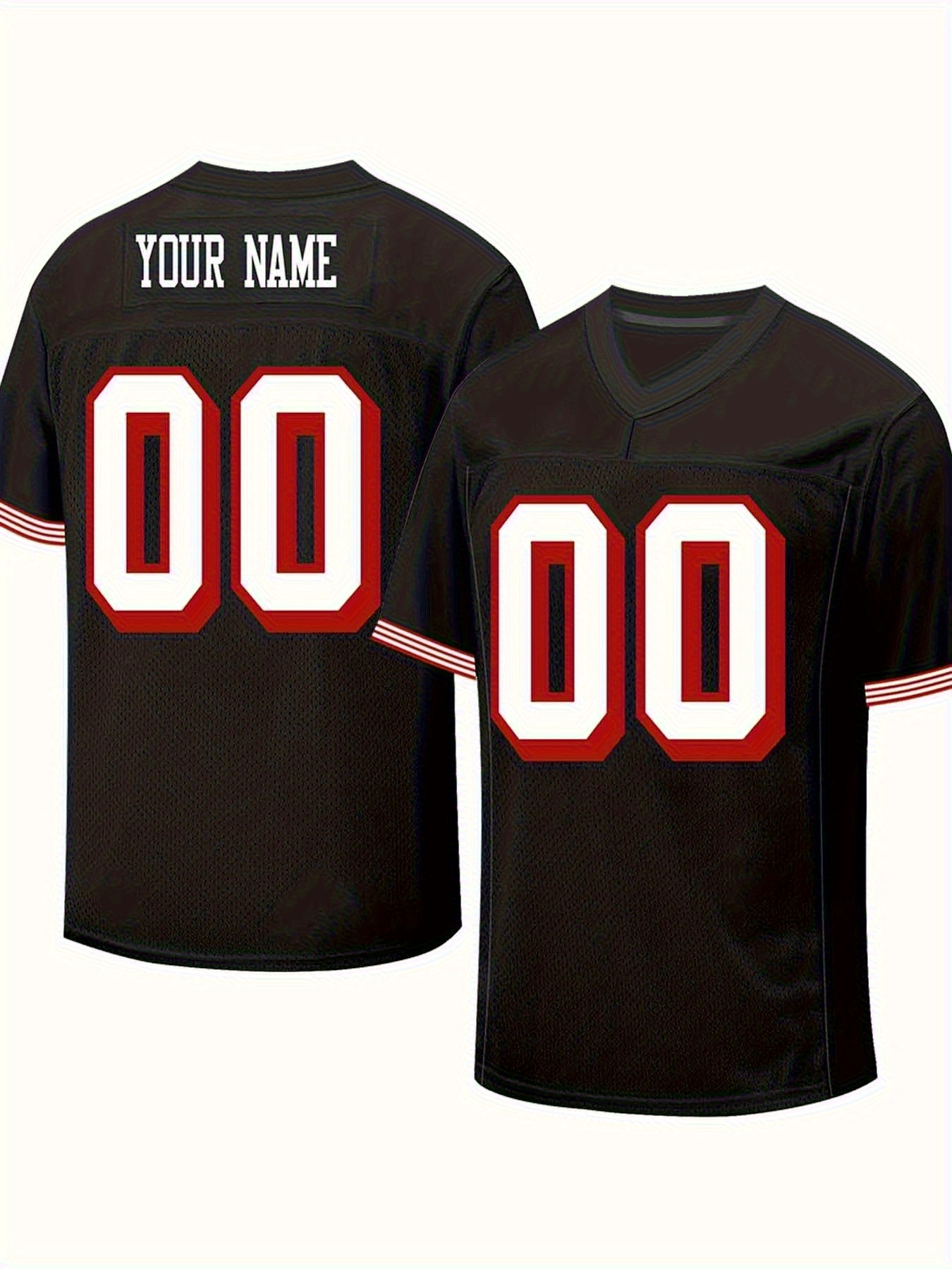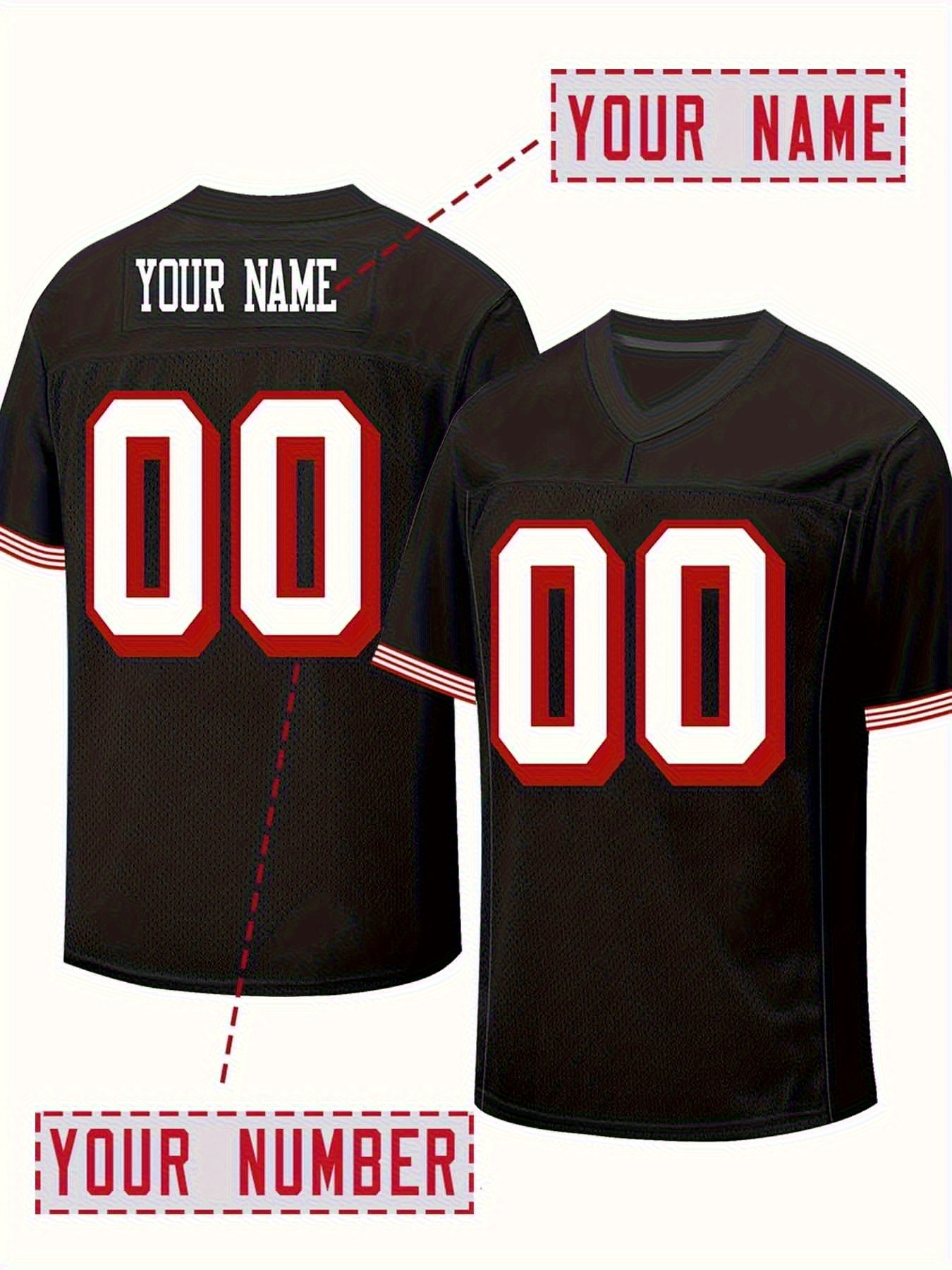 Custom V-Neck American Football Jersey - Personalized Name & Number, Embroidered Large Women'S Football Jersey, Black with Red/White Stripes & "00" Design, Breathable Summer Casual Sports Shirt for Outdoor Activities, Football Jersey, Durable Sportswear