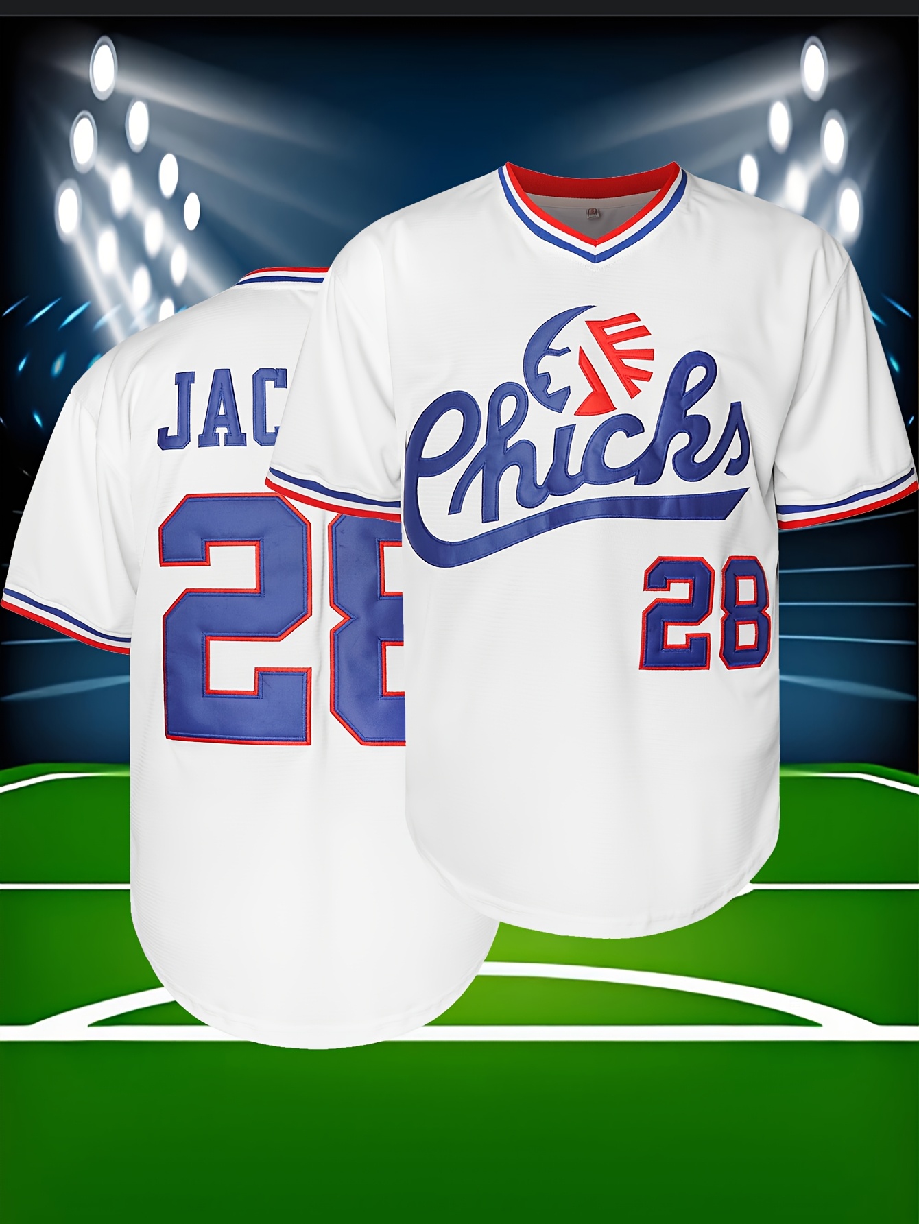 Men's #28 White Baseball Jersey - Breathable Embroidered Polyester, V-Neck & Button Closure, Loose Fit for Team Sports, Casual Outings, and Training, Sizes S-XXXL