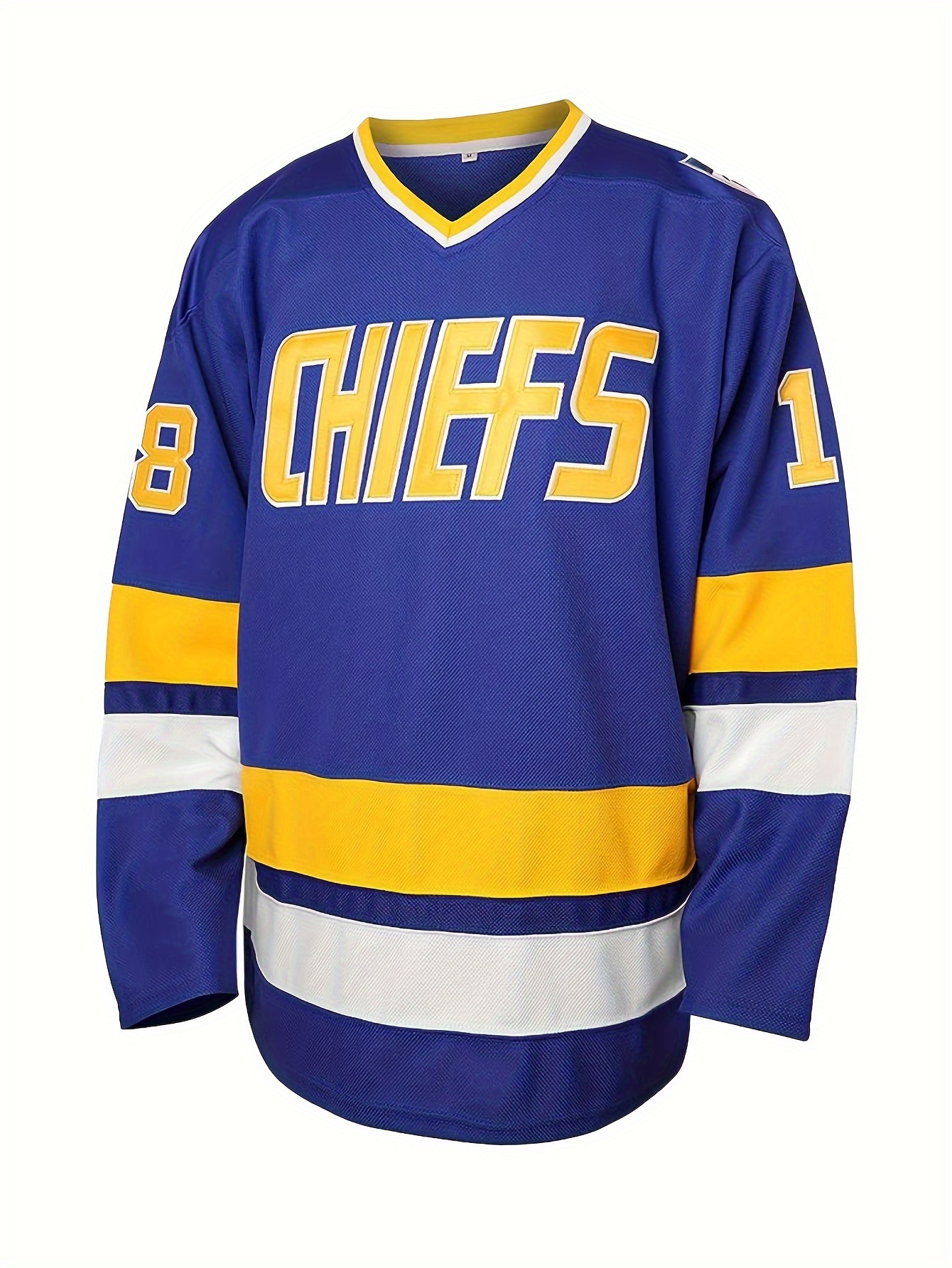1pc SheLucki Men'S Ice Hockey Jersey - Polyester V-Neck Sweatshirt with Embroidered Lettering, Loose Fit Long Sleeve Top for Sports, Casual, Outdoor Activities - All Seasons