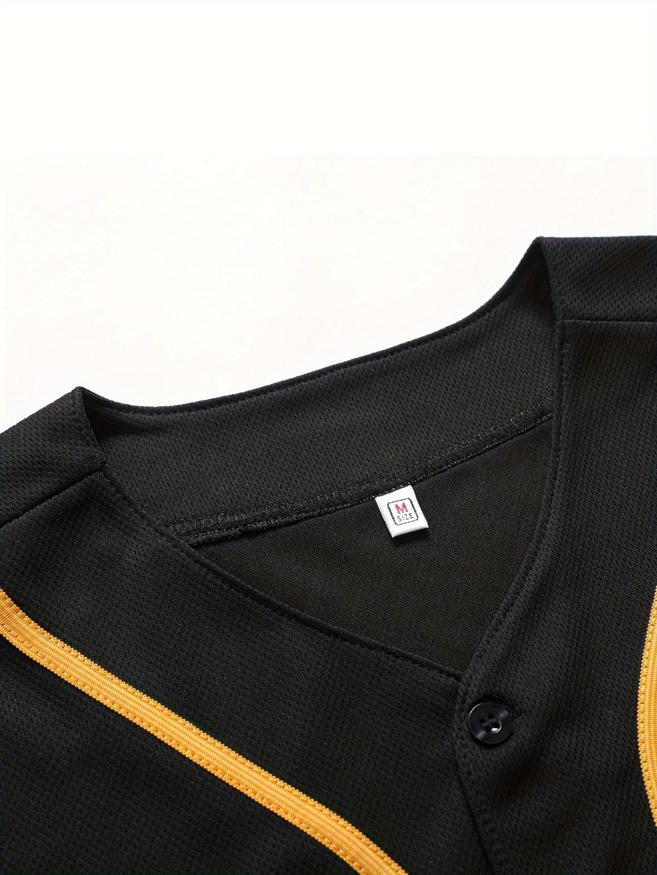 Men's #1 Black Baseball Jersey - Classic Embroidered Letter Design, Breathable Button-Up Short Sleeve Shirt for Training & Competition