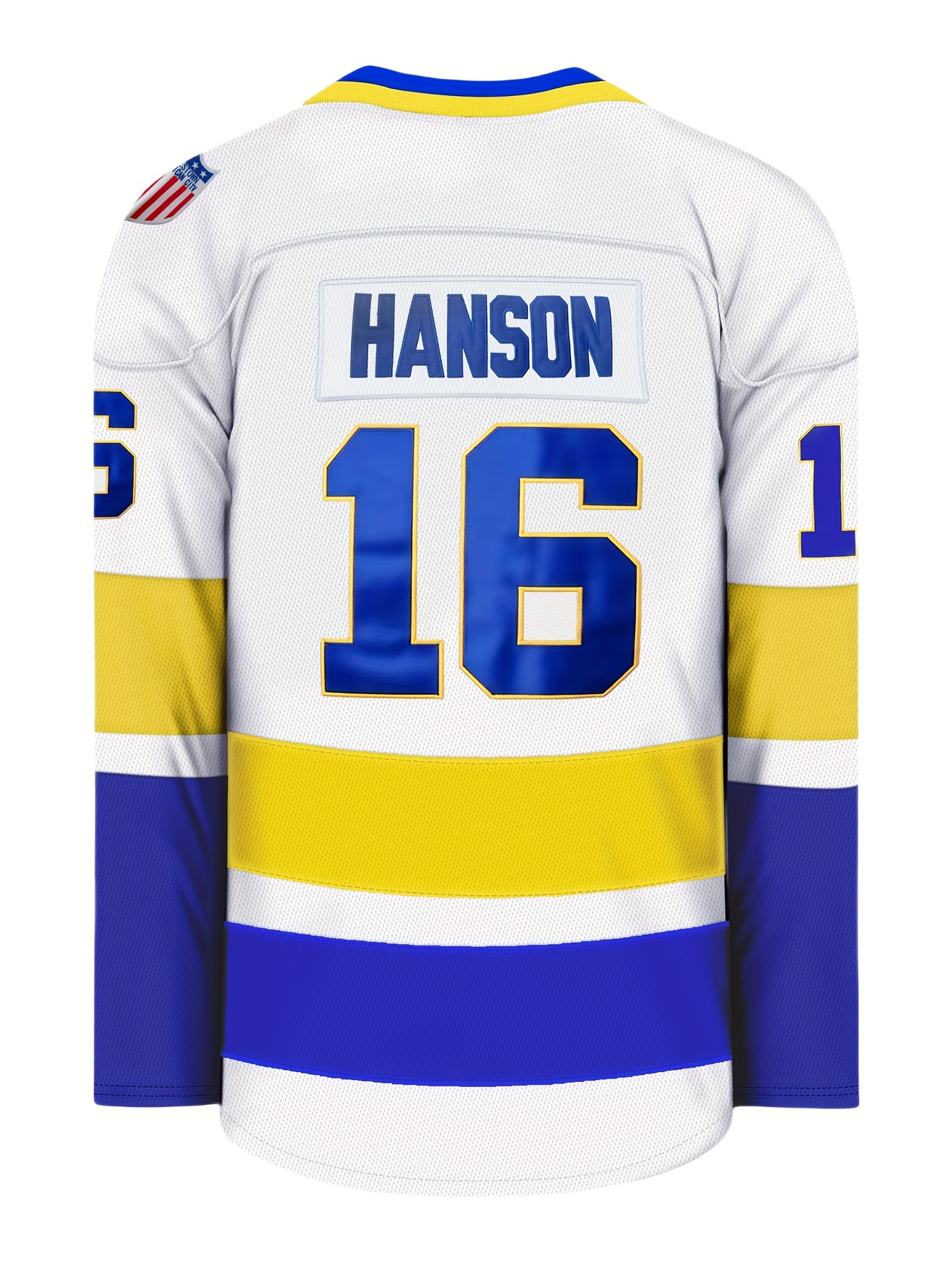 Men's #16 White Ice Hockey Jersey - Breathable, Embroidered Long Sleeve V-Neck Sweatshirt for Sports & Casual Wear