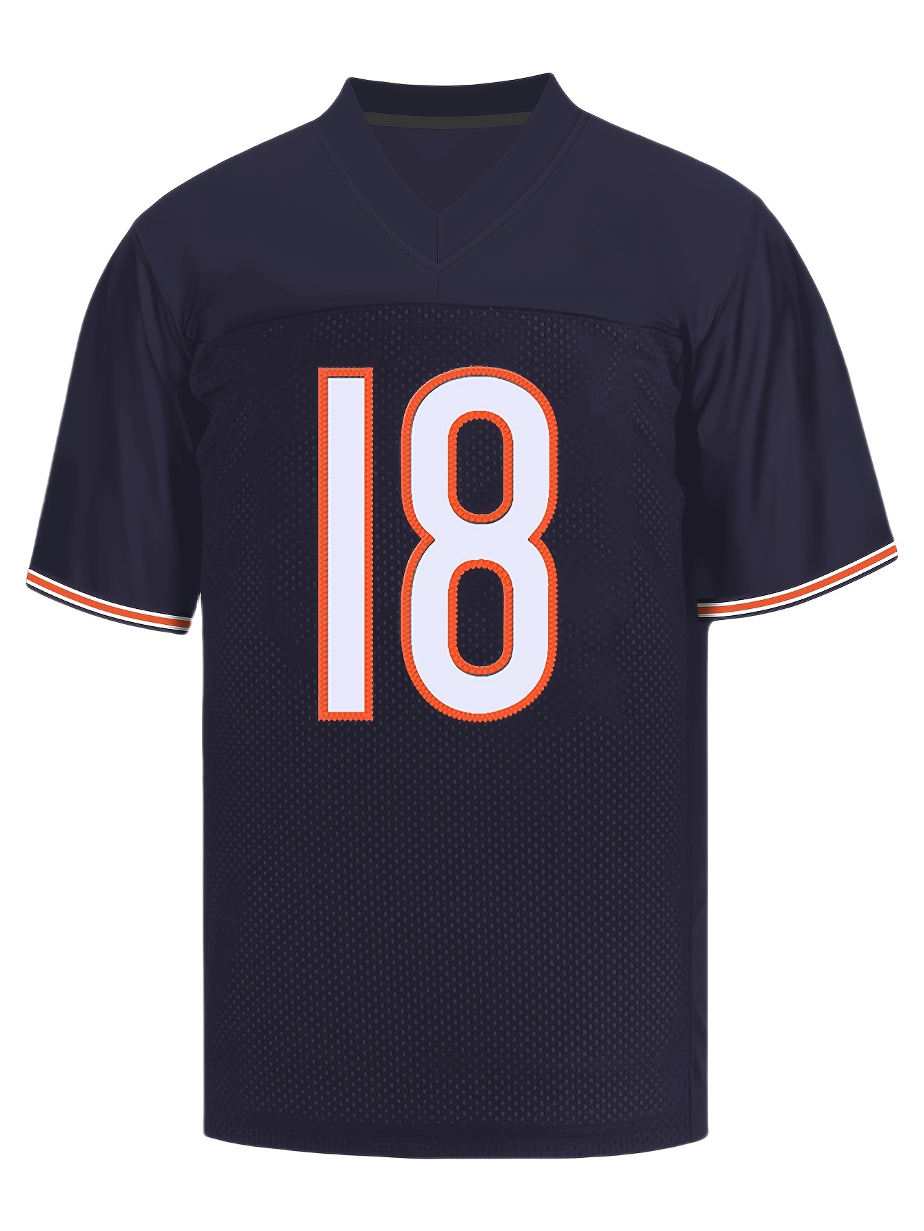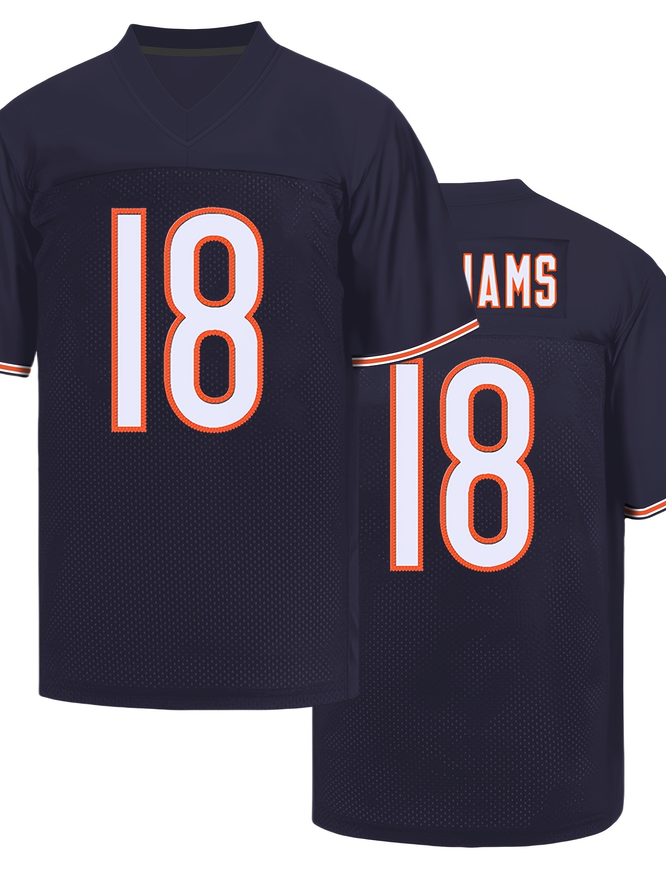 Men's #18 Embroidered Dark Blue Rugby Jersey - Breathable, Casual & Stylish V-Neck Sports Top for All Seasons