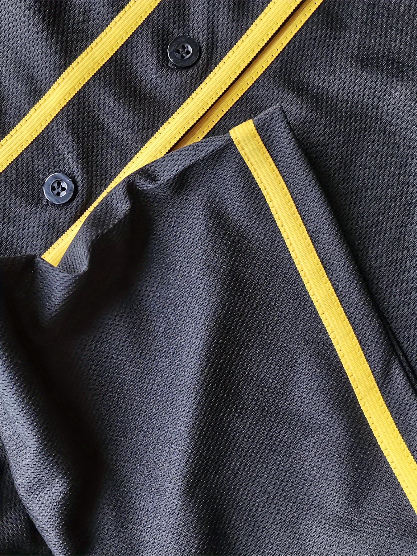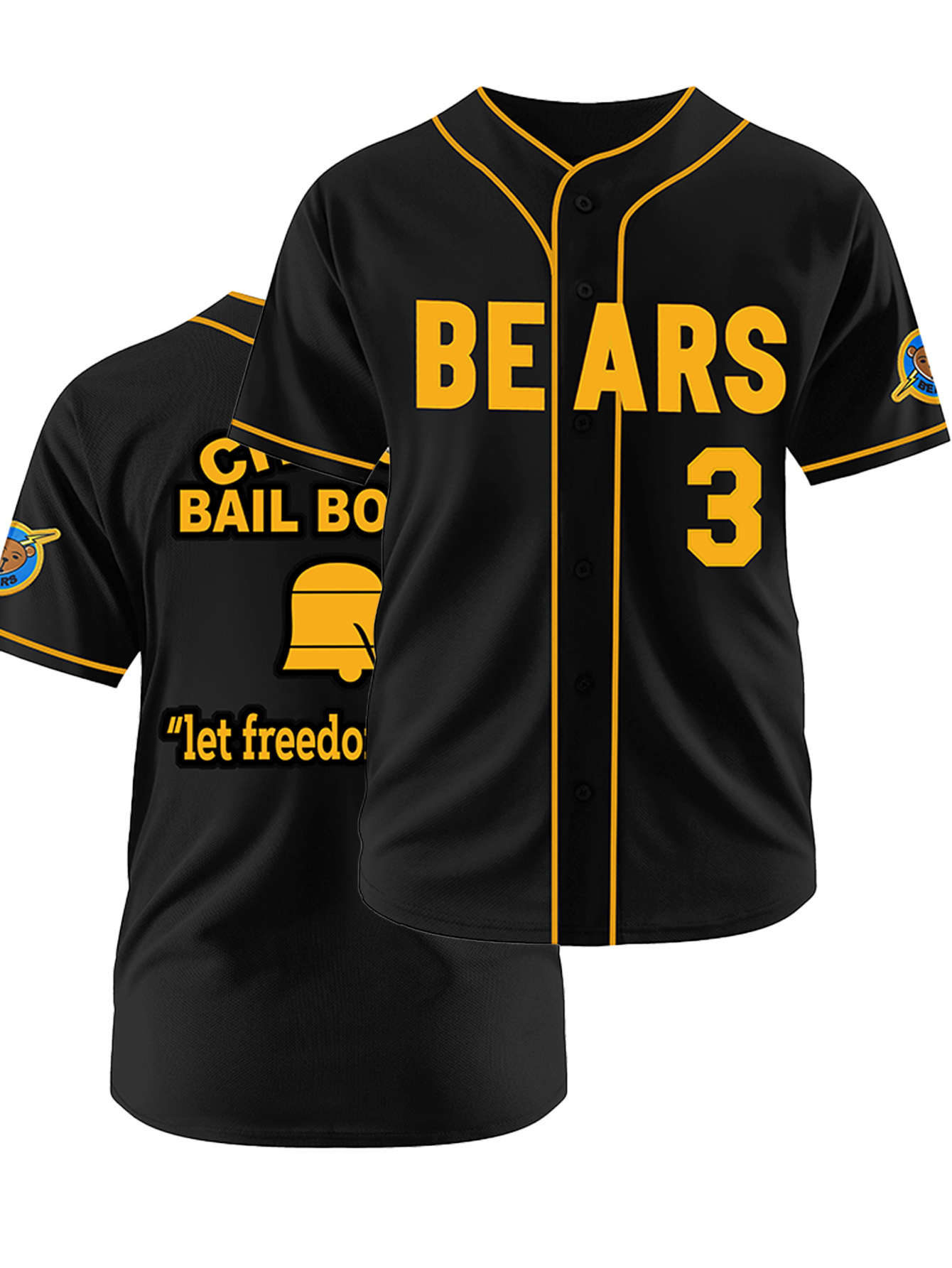 Men's #3 Bear Embroidered Baseball Jersey - Black & Yellow, Loose Fit, Breathable V-Neck, Casual Streetwear for Sports & Outdoor Activities, Outdoor Activewear | Striped Sports Shirt | Durable Embroidery