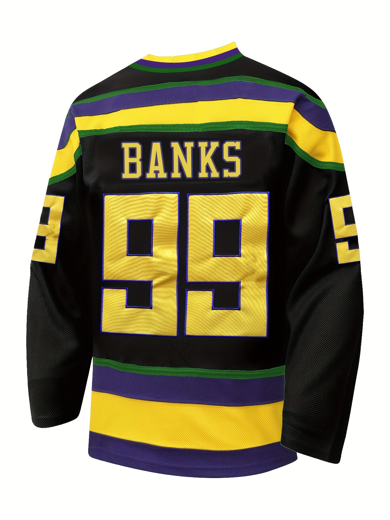 Men's #99 Black & Golden Ice Hockey Jersey - Embroidered, Breathable Polyester, V-Neck Captain's Sweatshirt with Striped Accents - Sporty & Casual Wear for All Seasons