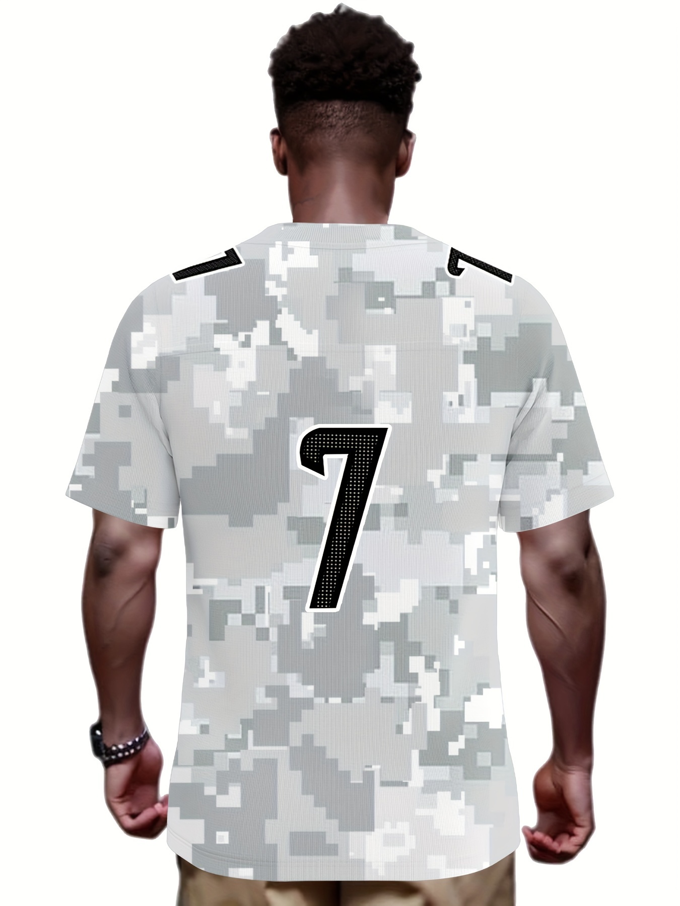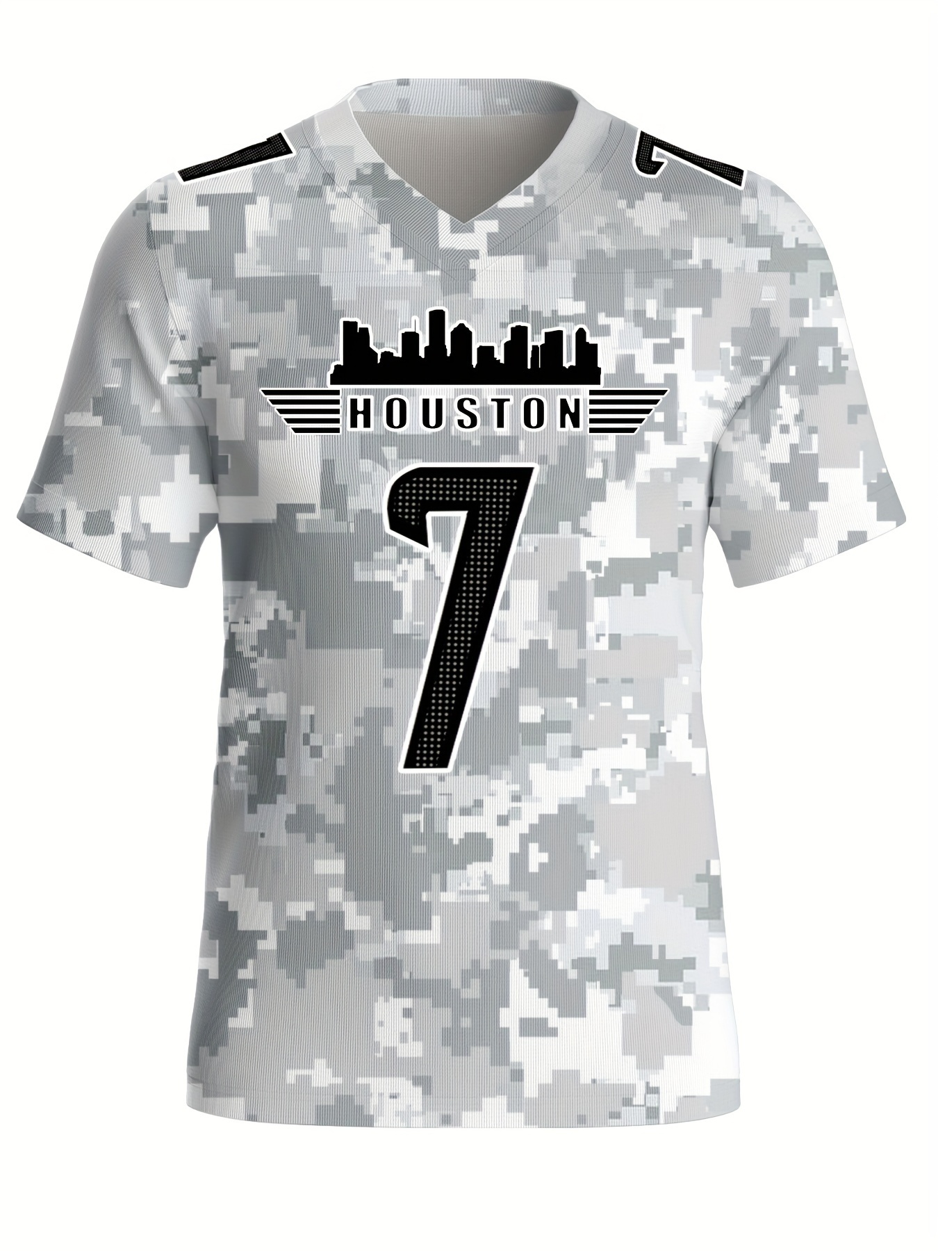 Men's Arctic Camo Houston #7 Polyester Football Jersey, Men V-Neck Sports Shirt With Slight Stretch, Breathable Casual Knit Fabric For All Seasons, Loose Fit Adult, Fans Gift Men, For Training Competition Festival Party Outdoor Sports
