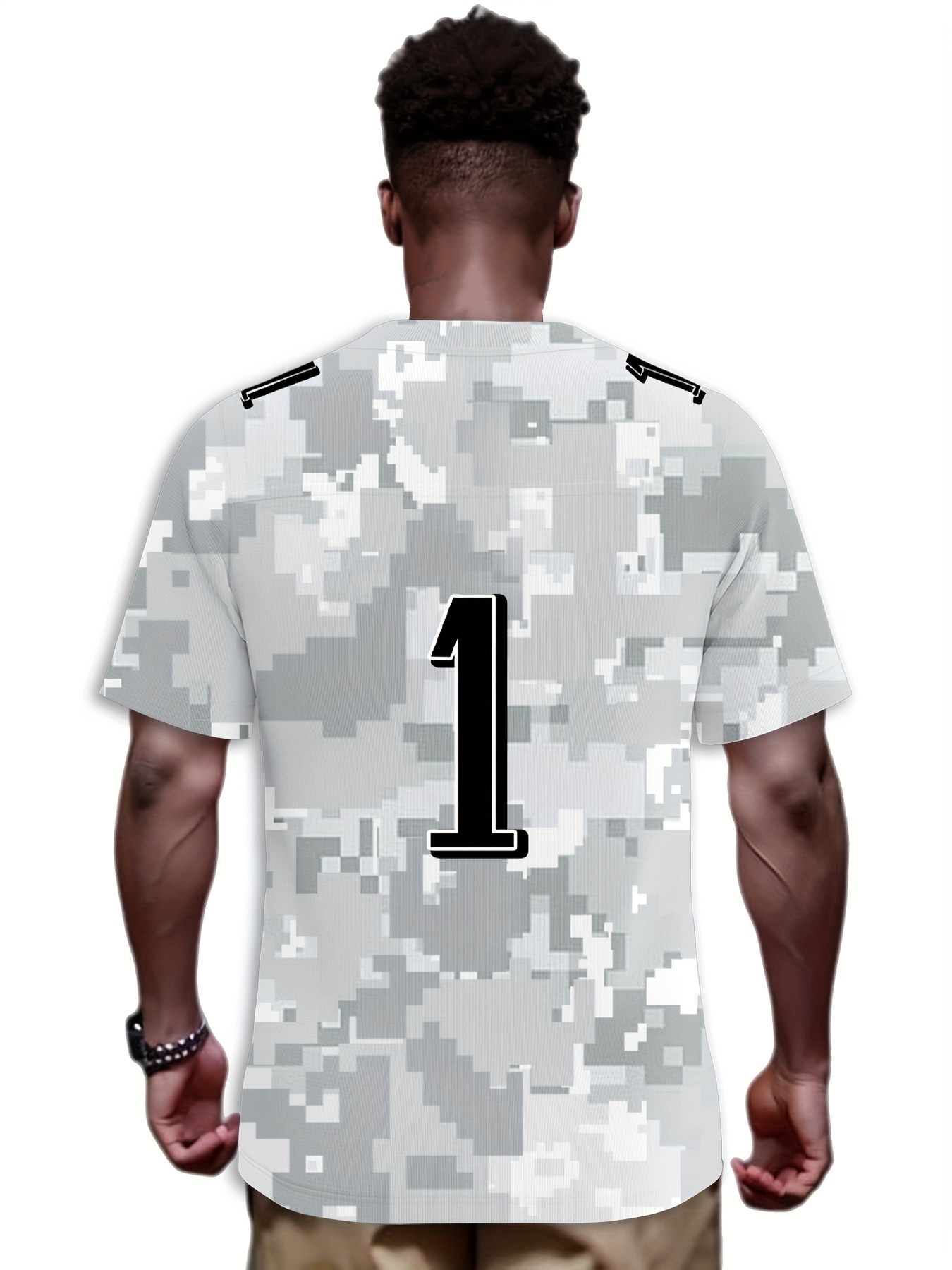 Men's Arctic Camo Philadelphia #1 Polyester Football Jersey, Men V-Neck Sports Shirt With Slight Stretch, Breathable Casual Knit Fabric For All Seasons, Loose Fit Adult, Fans Gift Men, For Training Competition Festival Party Outdoor Sports