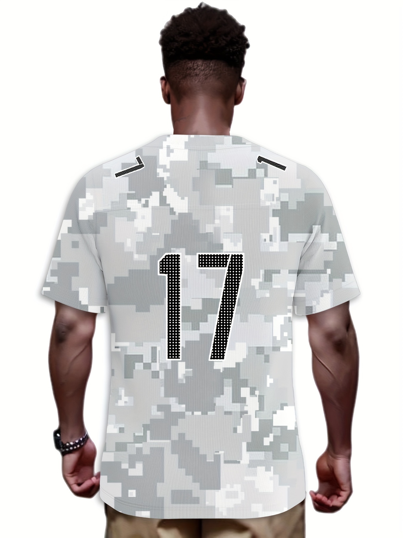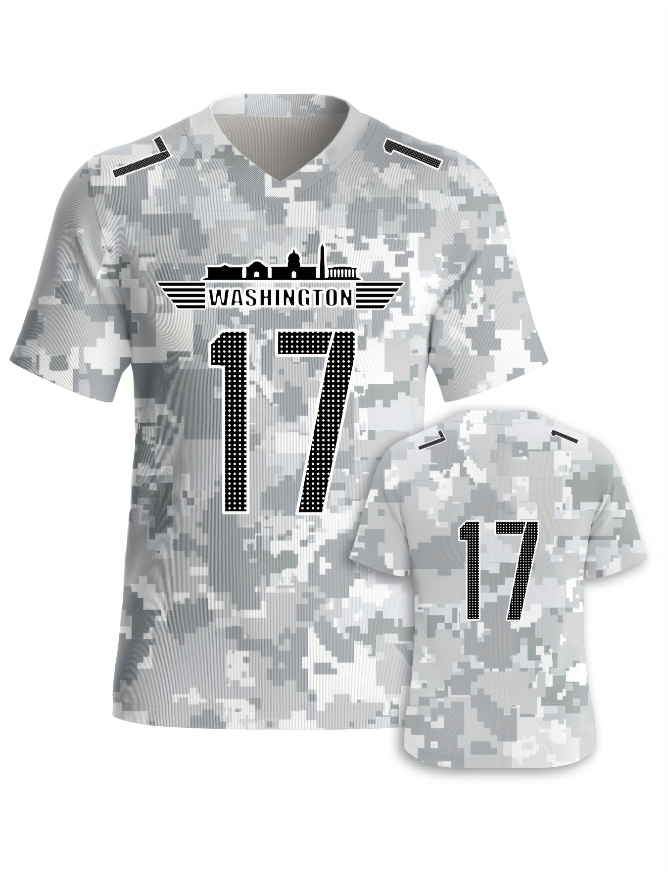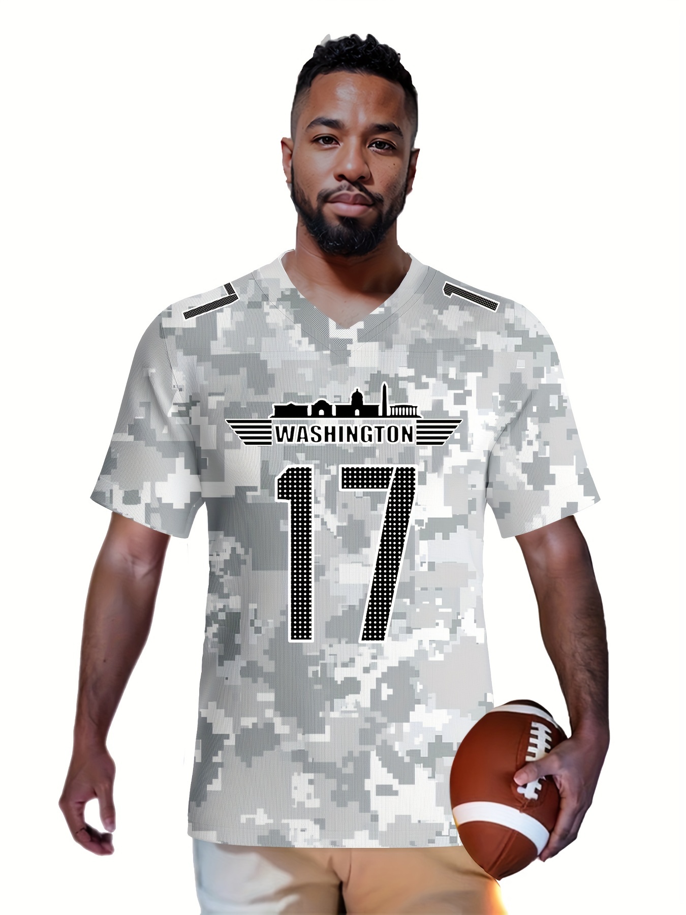 Men's Arctic Camo Washington #17 Polyester Football Jersey, Men V-Neck Sports Shirt With Slight Stretch, Breathable Casual Knit Fabric For All Seasons, Loose Fit Adult, Fans Gift Men, For Training Competition Festival Party Outdoor Sports