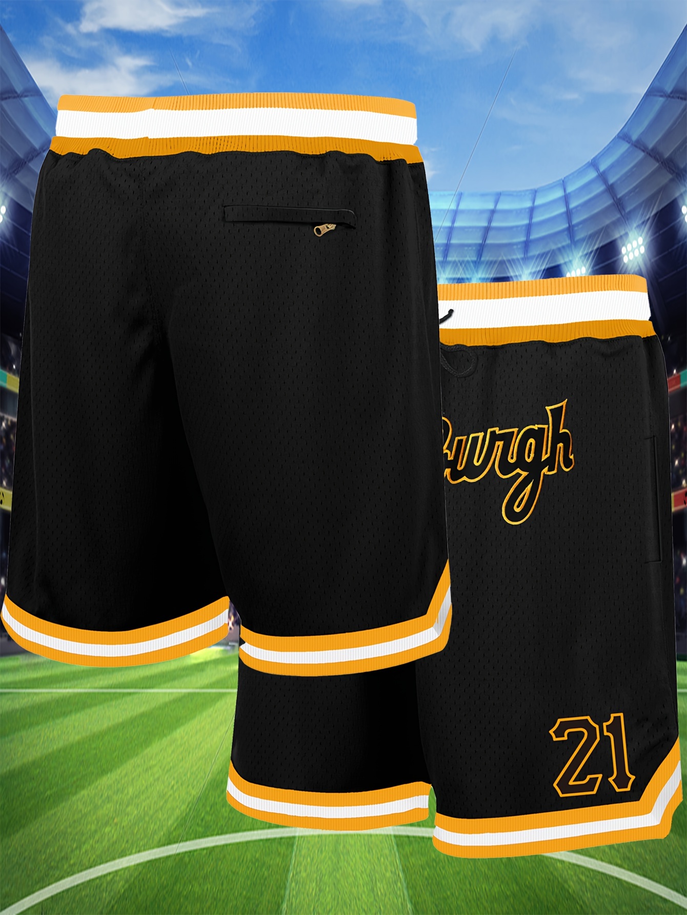 Men's Black # 21 Basketball Shorts, Classic Letter Embroidery Design, Breathable Button Style Short Sleeved Shirt, Suitable For Training And Competition
