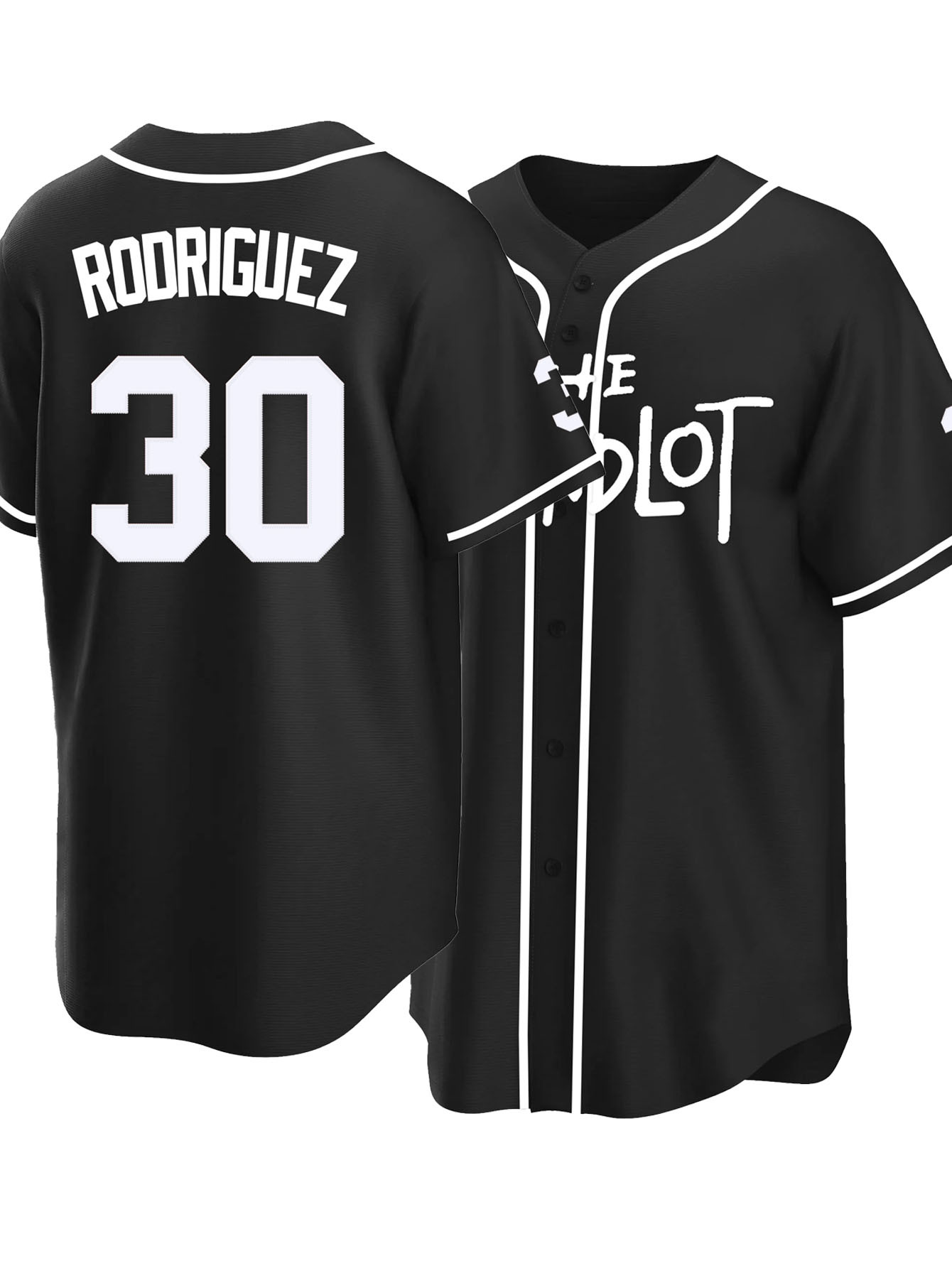 Men's Black #30 Baseball Jersey with RODRIGUEZ Embroidery - Breathable Button-Up V-Neck Shirt, Loose Fit for Training, Games & Casual Wear - All-Season Sportswear for Men & Teens, Outdoor Activity Shirt | Striped Baseball Shirt | Durable Embroidery