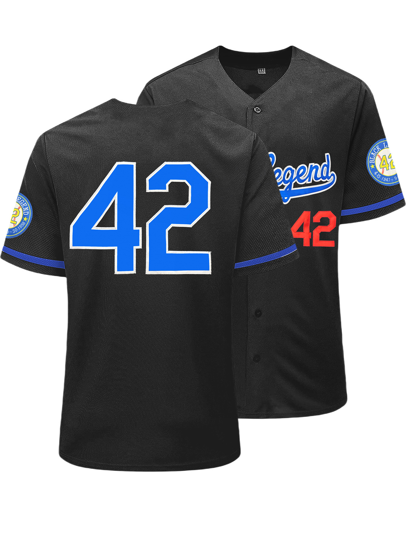 Men'S Black #42 Baseball Jersey Loose Embroidery Sporty, Fashionable, Casual, Breathable on The Street