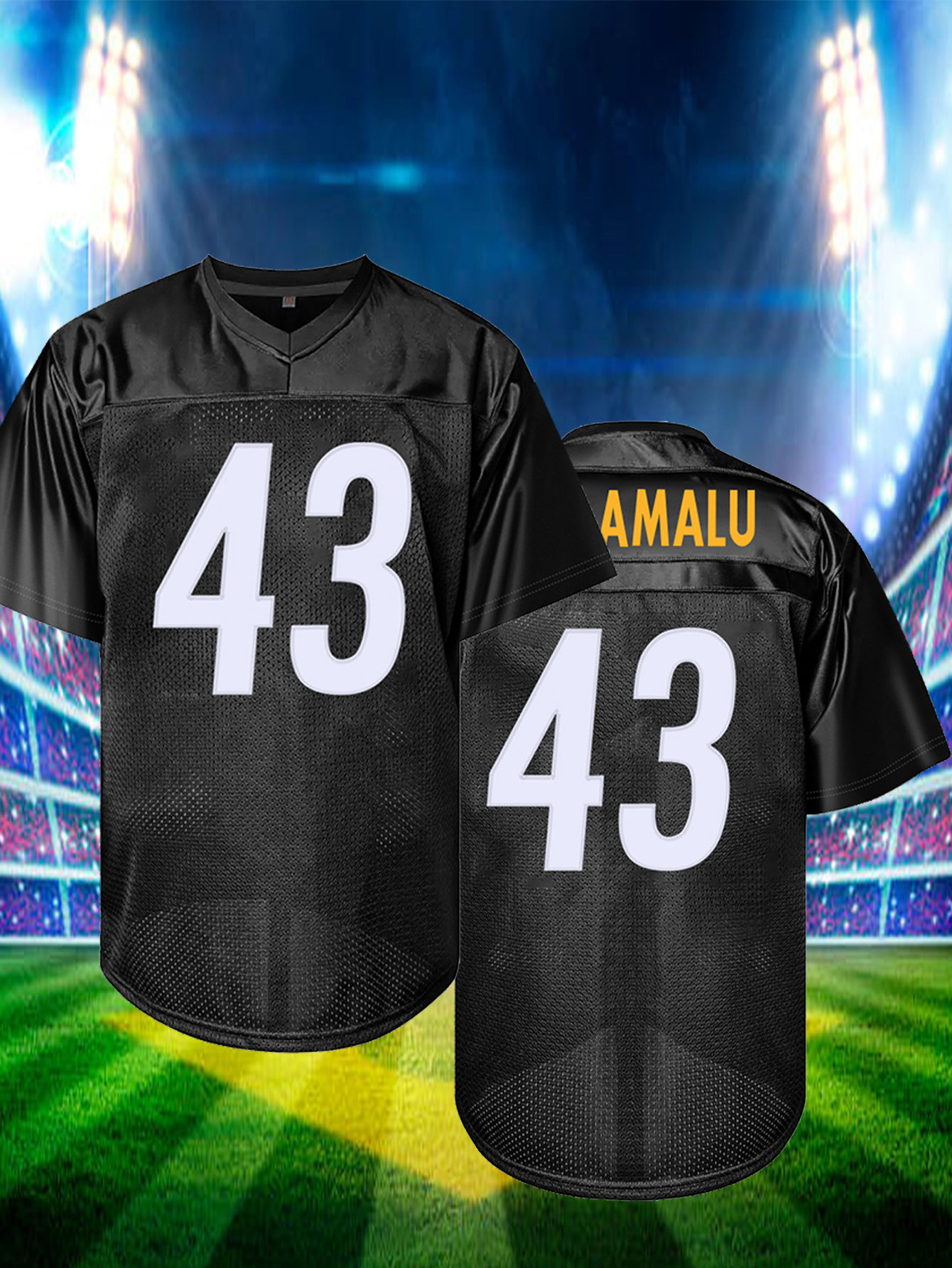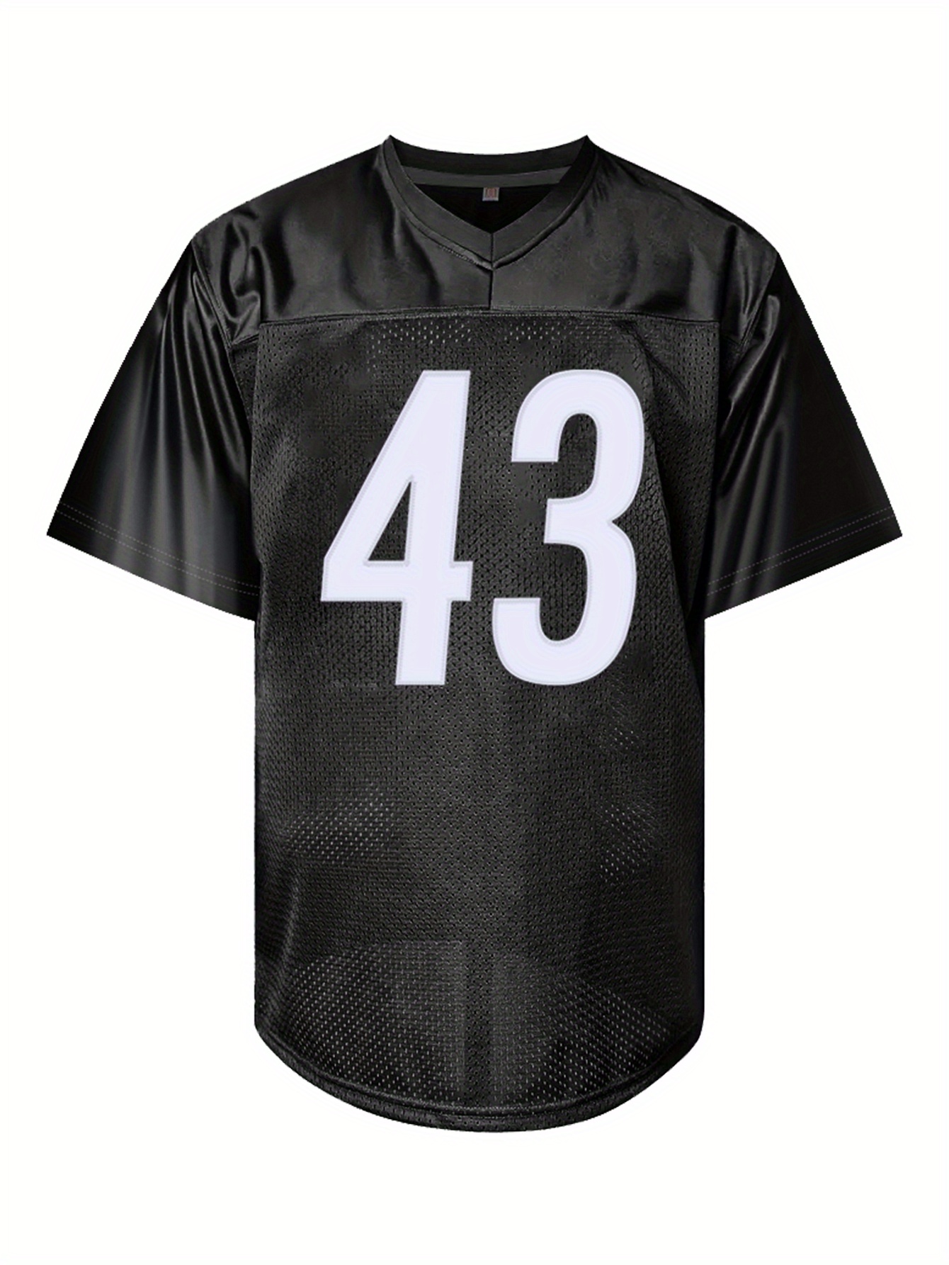 Men'S Black # 43 Rugby Shirt with Loose Embroidered Sports, Fashionable, Casual, Street Breathable Rugby Top