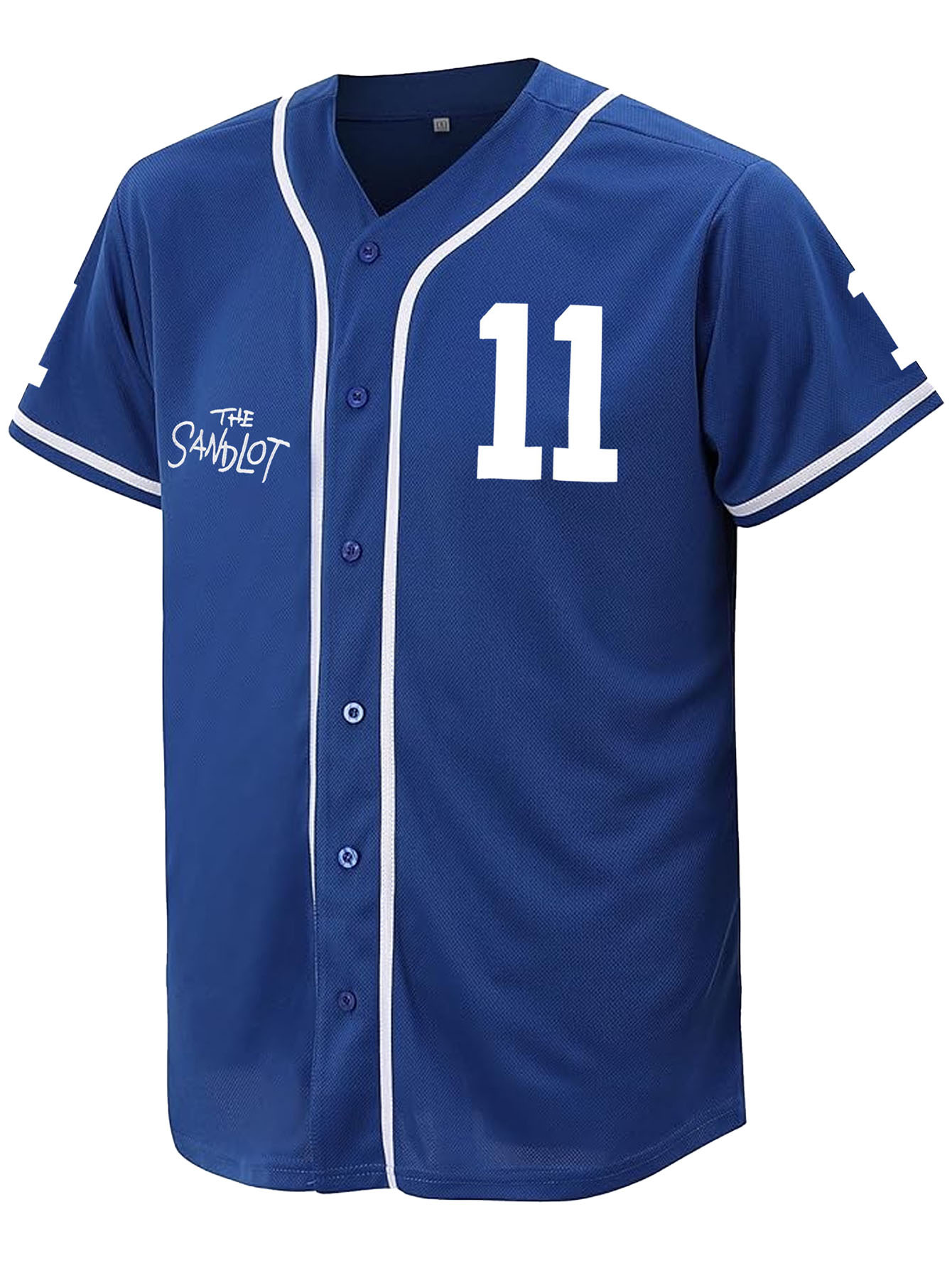 Men'S Blue # 11 Baseball Shirt, Classic Letter Embroidery Design, Button style Short Sleeve Breathable Shirt, Training and Competition Category: Men'S Baseball Shirt
