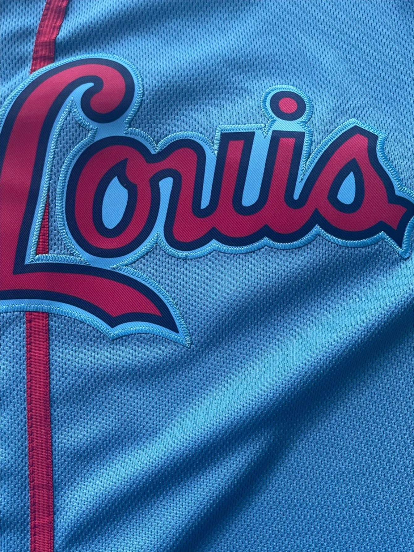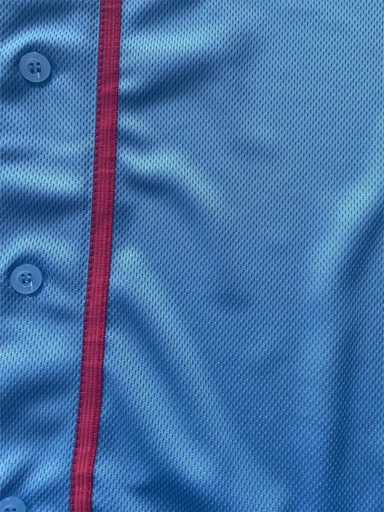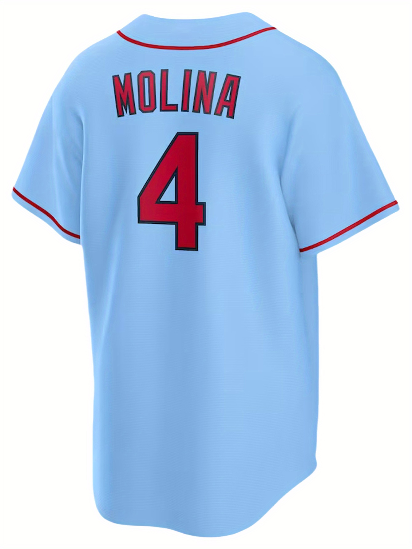 Men's Retro Embroidered Baseball Jersey - Breathable Button-Up V-Neck #4 Light Blue & Red Trim, Loose Fit for Training, Games & Casual Wear, All-Season Machine Washable Sportswear