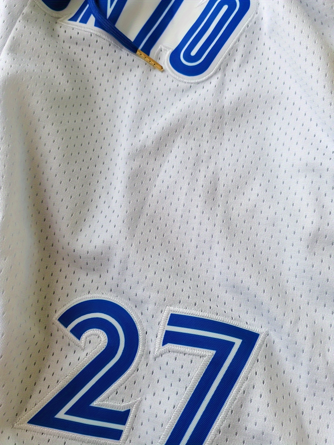 Men's White # 27 Basketball Shorts, Classic Letter Embroidery Design, Breathable Button Style Short Sleeved Shirt, Suitable for Training And Competition