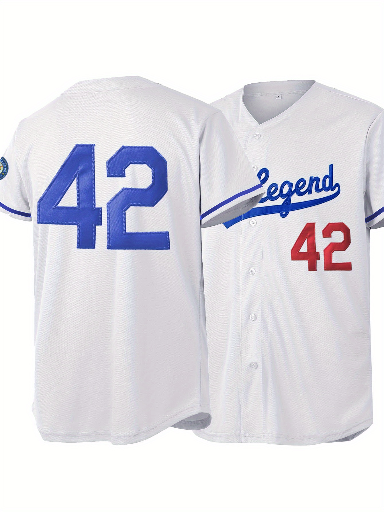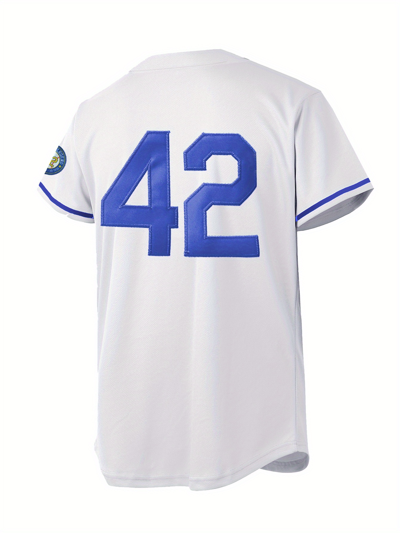 Men'S White # 42 Baseball Shirt, Classic Letter Embroidery Design, Button Style Short Sleeved Breathable Shirt, for Training And Competition Use