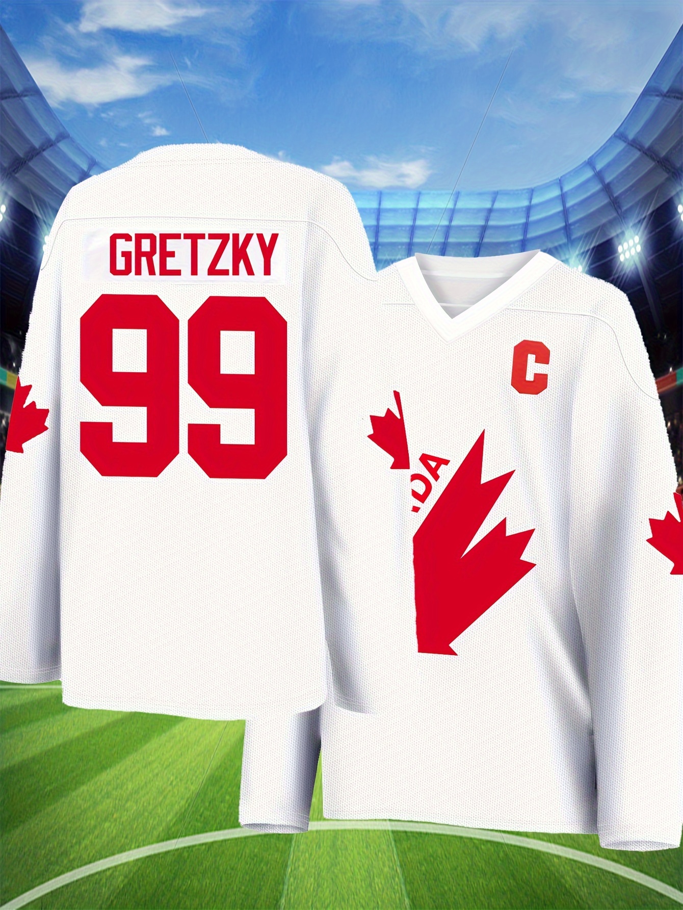 Men's White # 99 Ice Hockey Sweatshirt, Loose Embroidered Long Sleeves, Sporty, Fashionable And Casual, Breathable On The Street