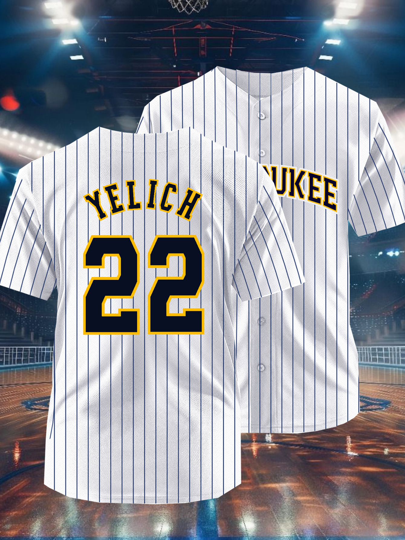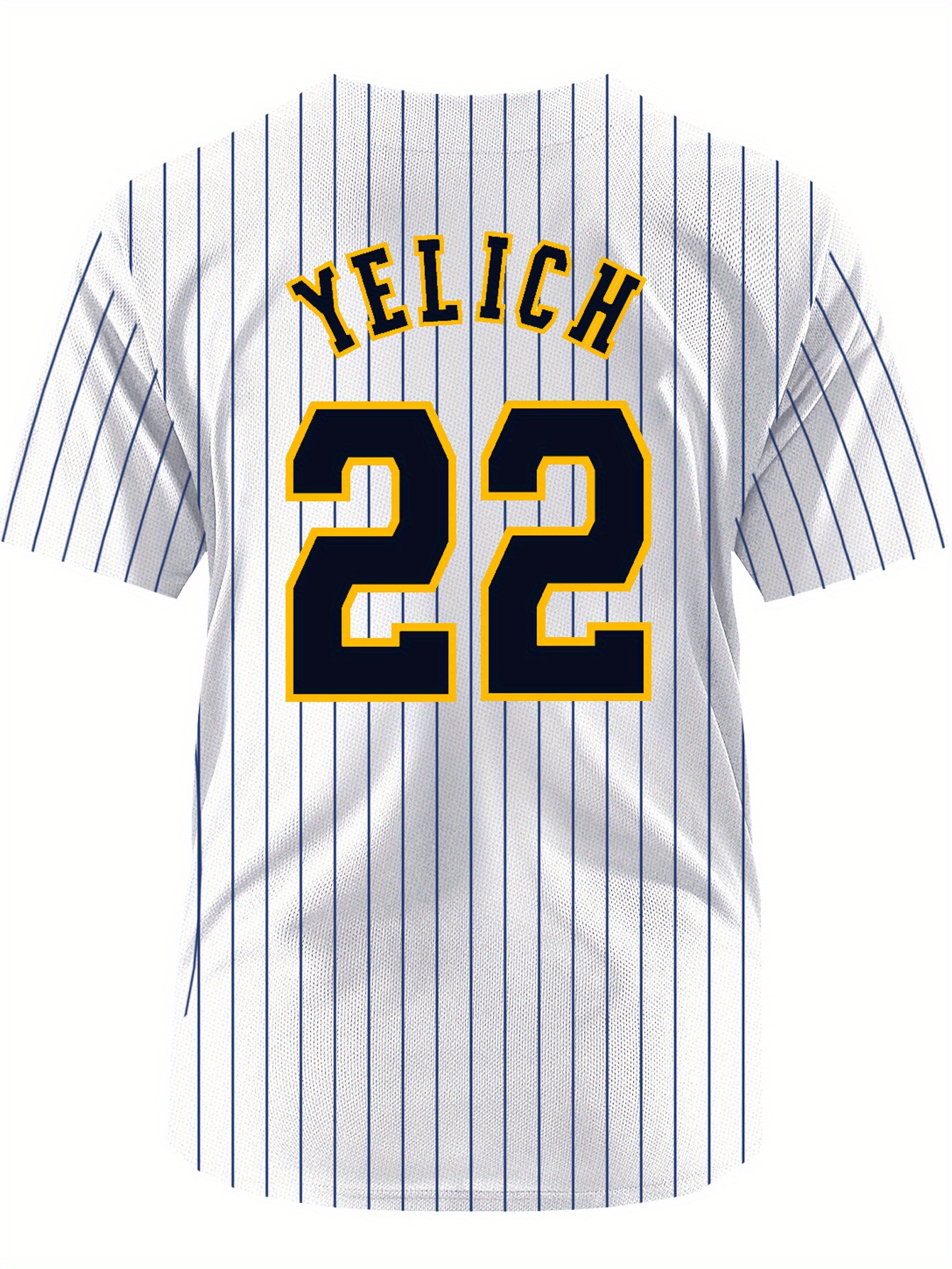 Men's White & Yellow Stripe #22 Baseball Jersey - Breathable Button-Up V-Neck, Loose Fit Retro Embroidered YELICH Design, All-Season Training & Game Shirt for Men & Teens, Machine Washable, Casual Wear | Vintage Sporty Look | Embroidered Detailing