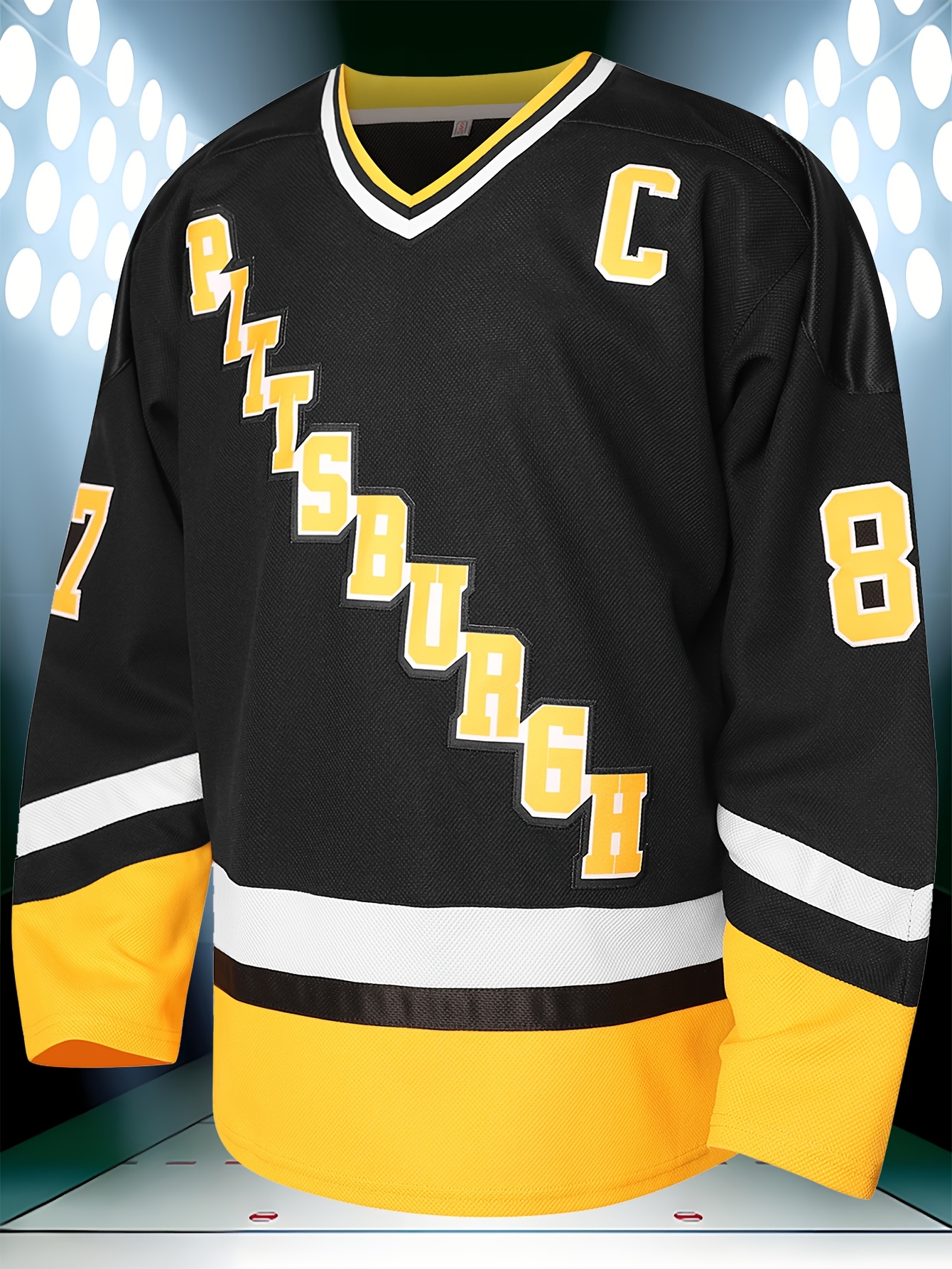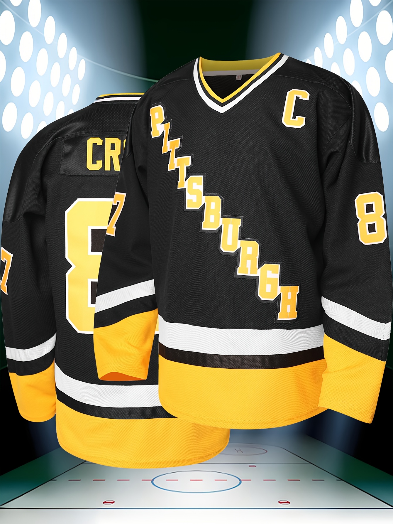 Men'S American Ice Hockey Sweater # 87 Black Ice Hockey Sweater Breathable V-neck