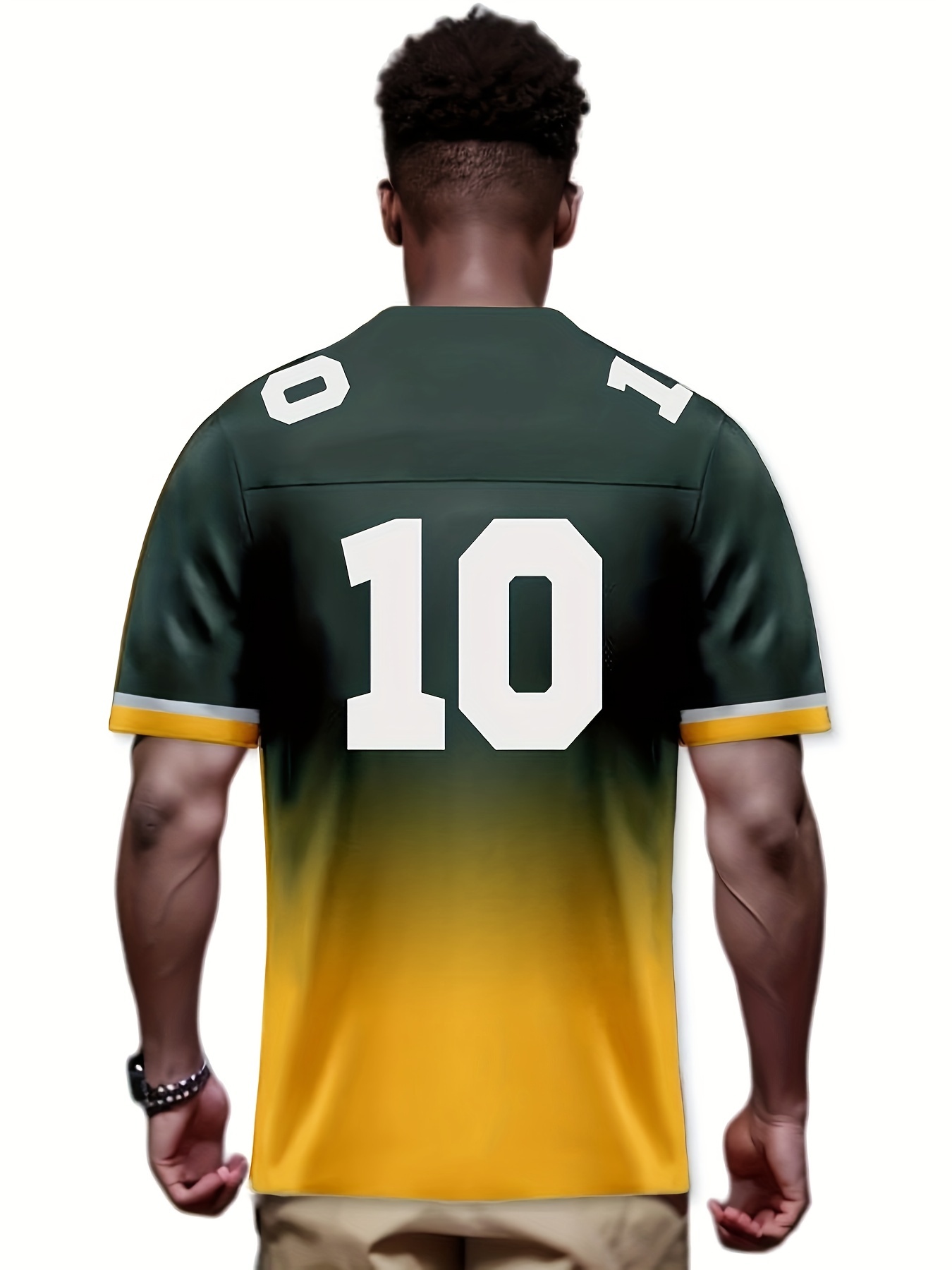 Men's Green Bay #10 Polyester Green Football Jersey, Men Gradient V-Neck Sports Shirt With Slight Stretch, Breathable Casual Knit Fabric For All Seasons, Loose Fit Adult & Teen, Fans Gift Men Youth