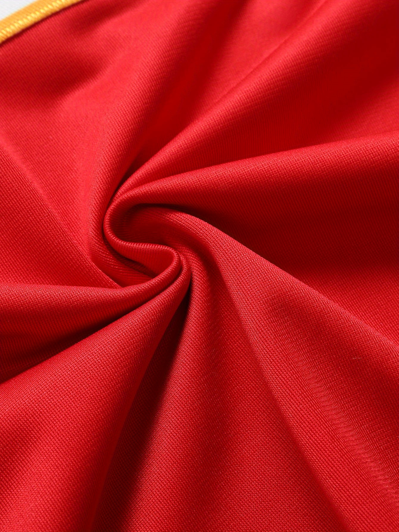 Men's Red #15 Embroidered Rugby Jersey - Loose Fit Breathable V-Neck Top for Sports, Casual & Streetwear | All-Season Machine Washable Athletic Shirt, Outdoor Clothing, Sporty Style, Embroidered Detailing