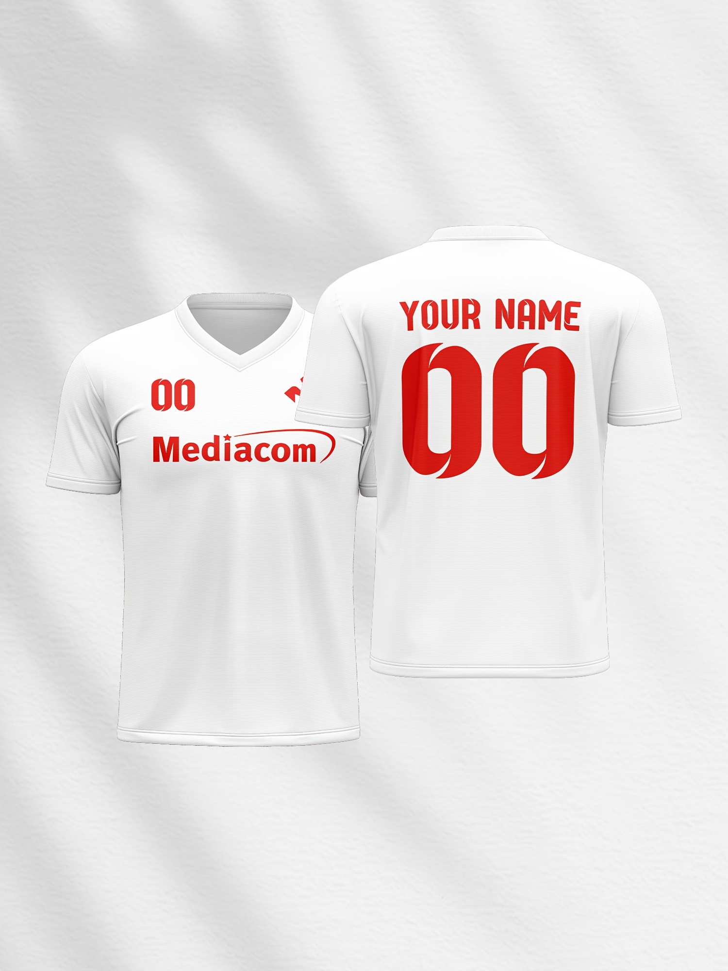 1pc Customizable Soccer Jersey for Kids - Personalized Name & Number, V-Neck, Polyester, Knit Fabric, All-Season Sports & Casual Top for Boys & Girls, Preppy Street Style, Medium Stretch, Regular Fit