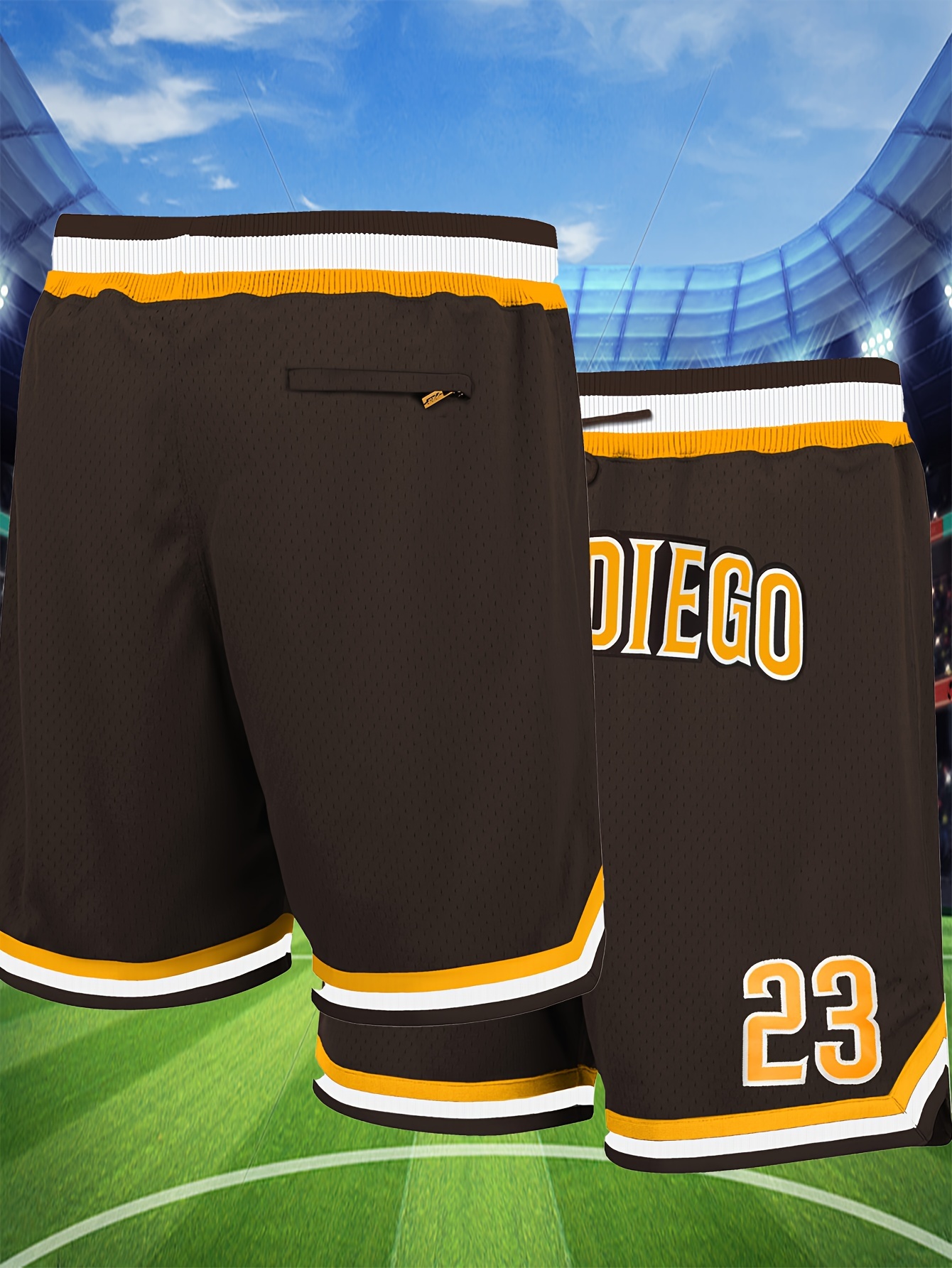 1pc Men'S Polyester Basketball Shorts - #23 Embroidered, Breathable Knit Fabric, Slight Stretch, Loose Fit for Training & Competition, Sports & Casual Style for All Seasons