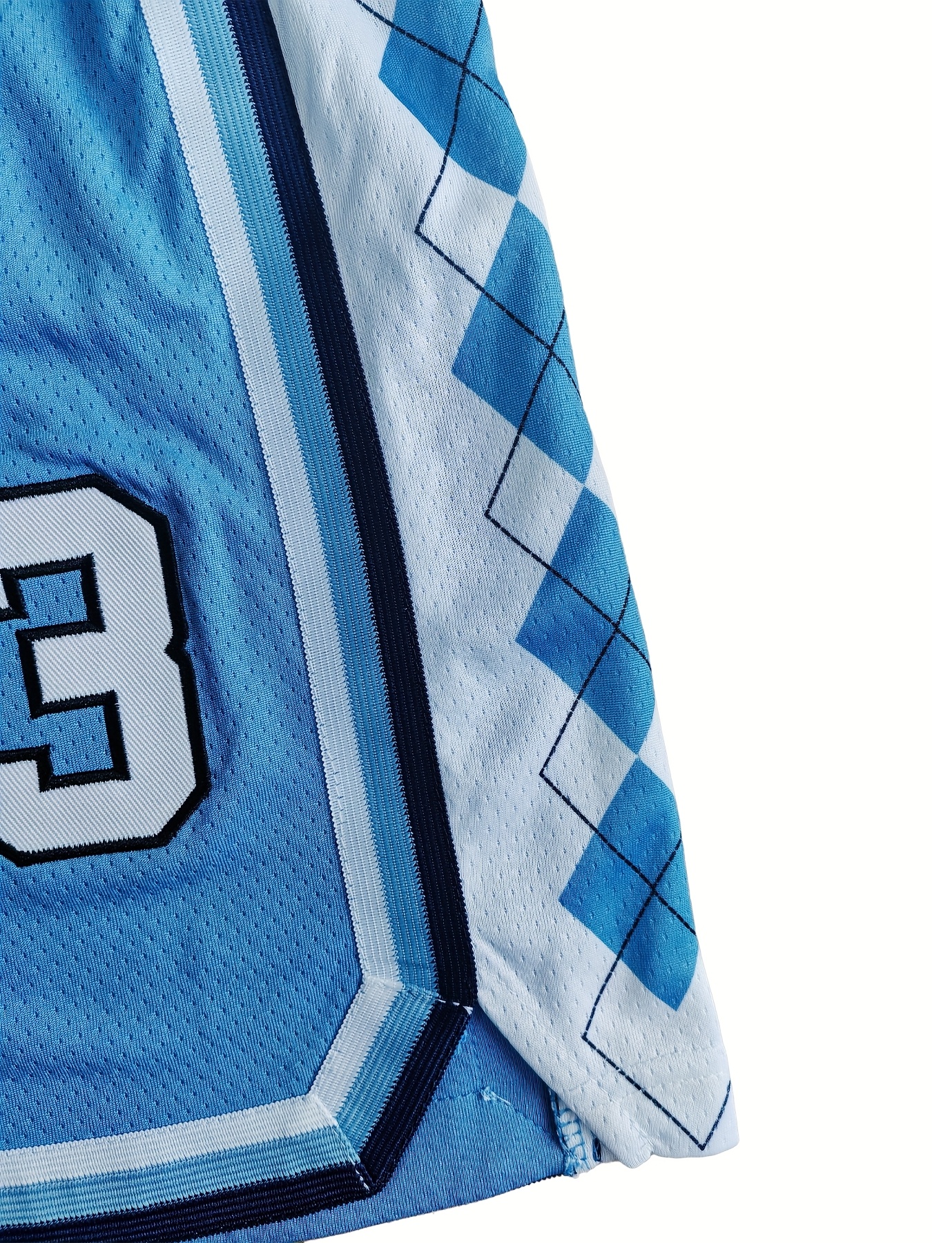 Charlotte Basketball Shorts for Youngsters & Teens - Breathable, Stylish Blue & White Athletic Wear with Pockets, Elastic Waistband, and Diamond Pattern Design, Perfect for Outdoor