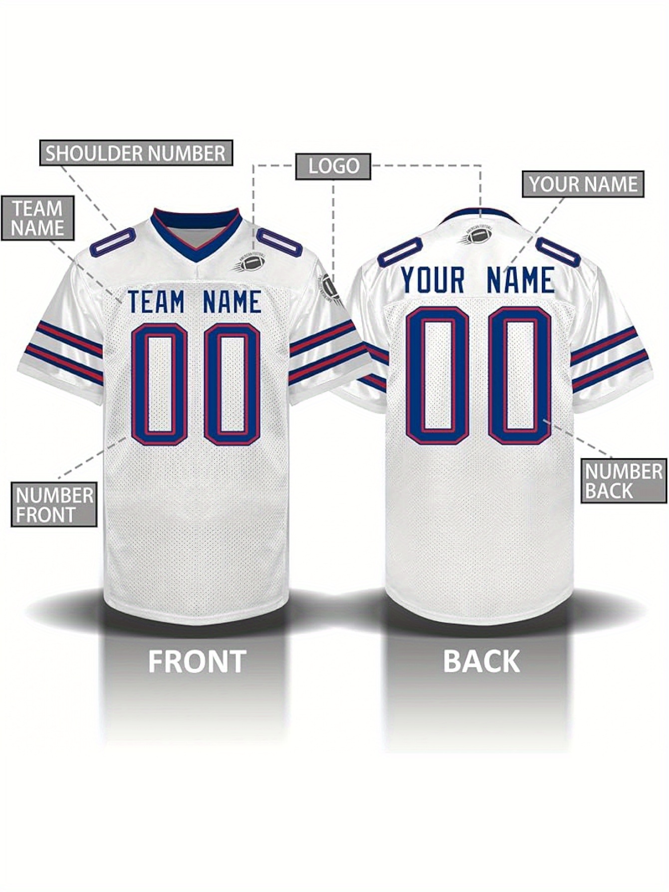 Custom Personalized Football Jerseys with Team Numbers Printed, Tailored Plus-Size Short-Sleeve Shirts, Perfect Gifts for Fans.