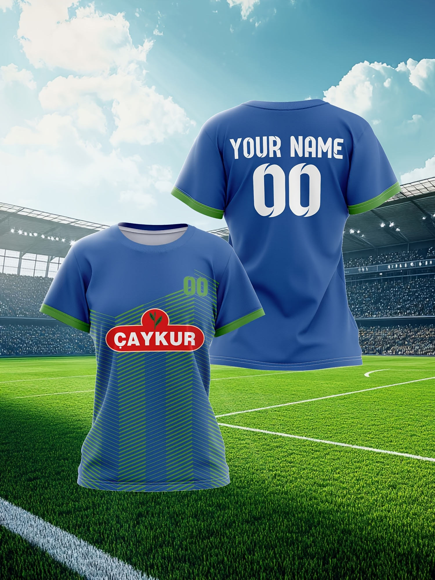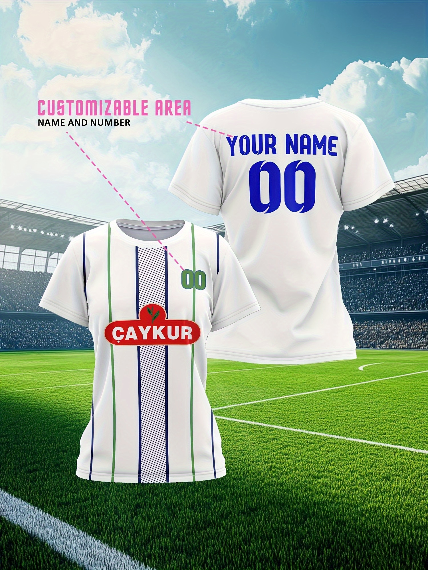 Customizable Plus Size Women'S Soccer Jersey - Personalized Team Name & Number, Breathable Athletic Shirt with "CAYKUR" Logo, Soft Comfort Fit for Outdoor Sports, Soccer Accessories, PLUS SIZE