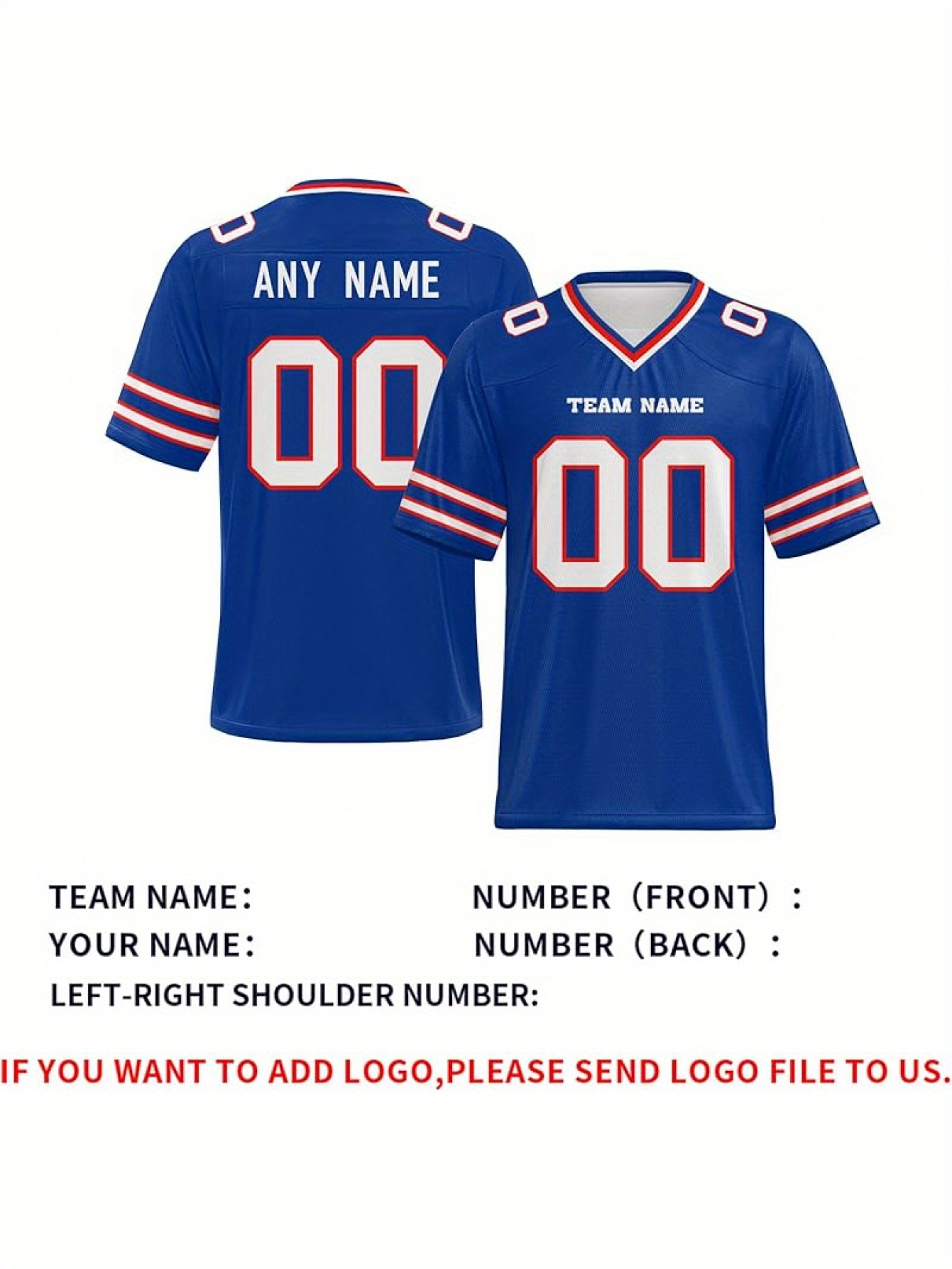 Customized football jerseys, personalized football shirts, printed and sewn names and numbers, personalized football and tennis jerseys, outdoor sports matches