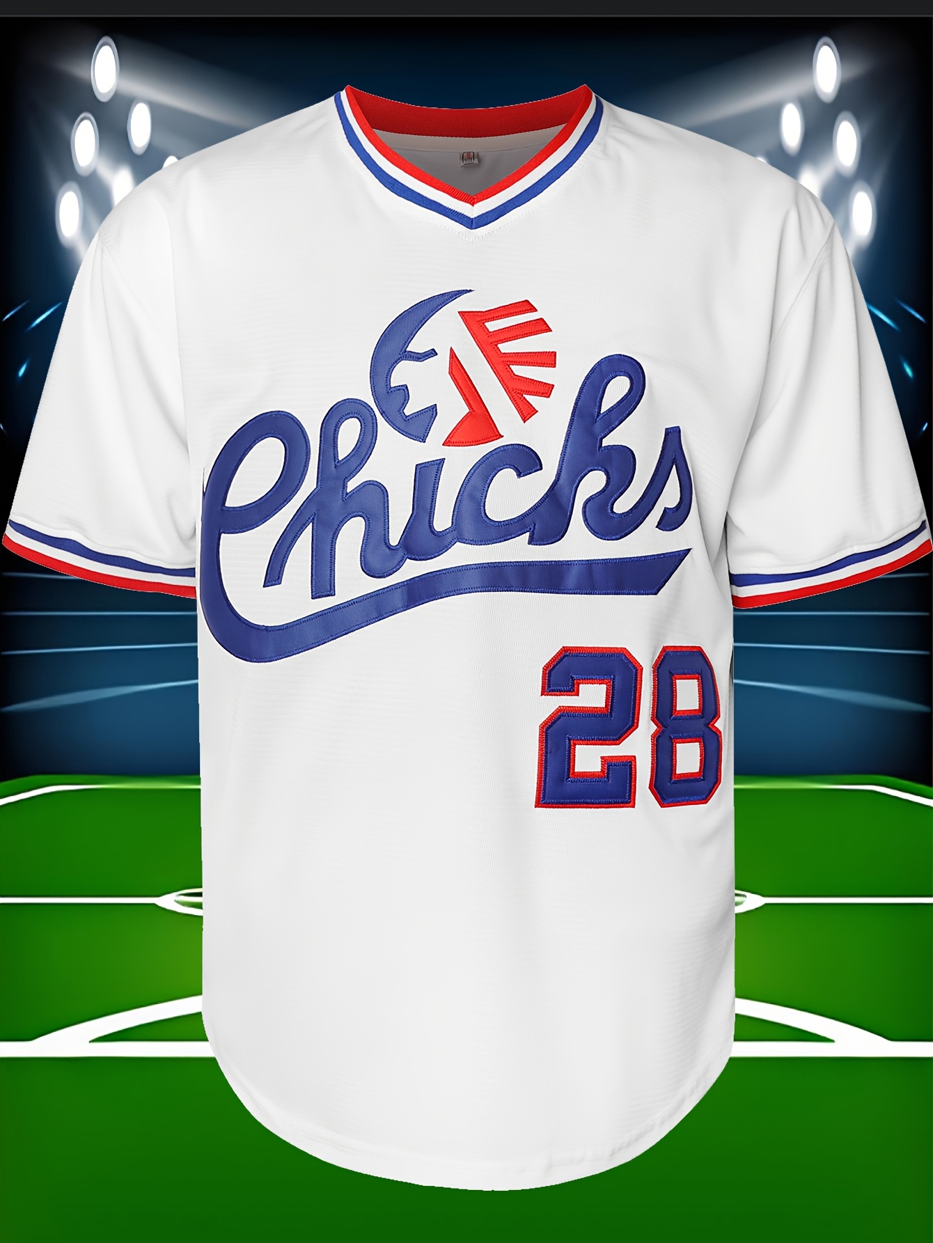 Men's #28 White Baseball Jersey - Breathable Embroidered Polyester, V-Neck & Button Closure, Loose Fit for Team Sports, Casual Outings, and Training, Sizes S-XXXL