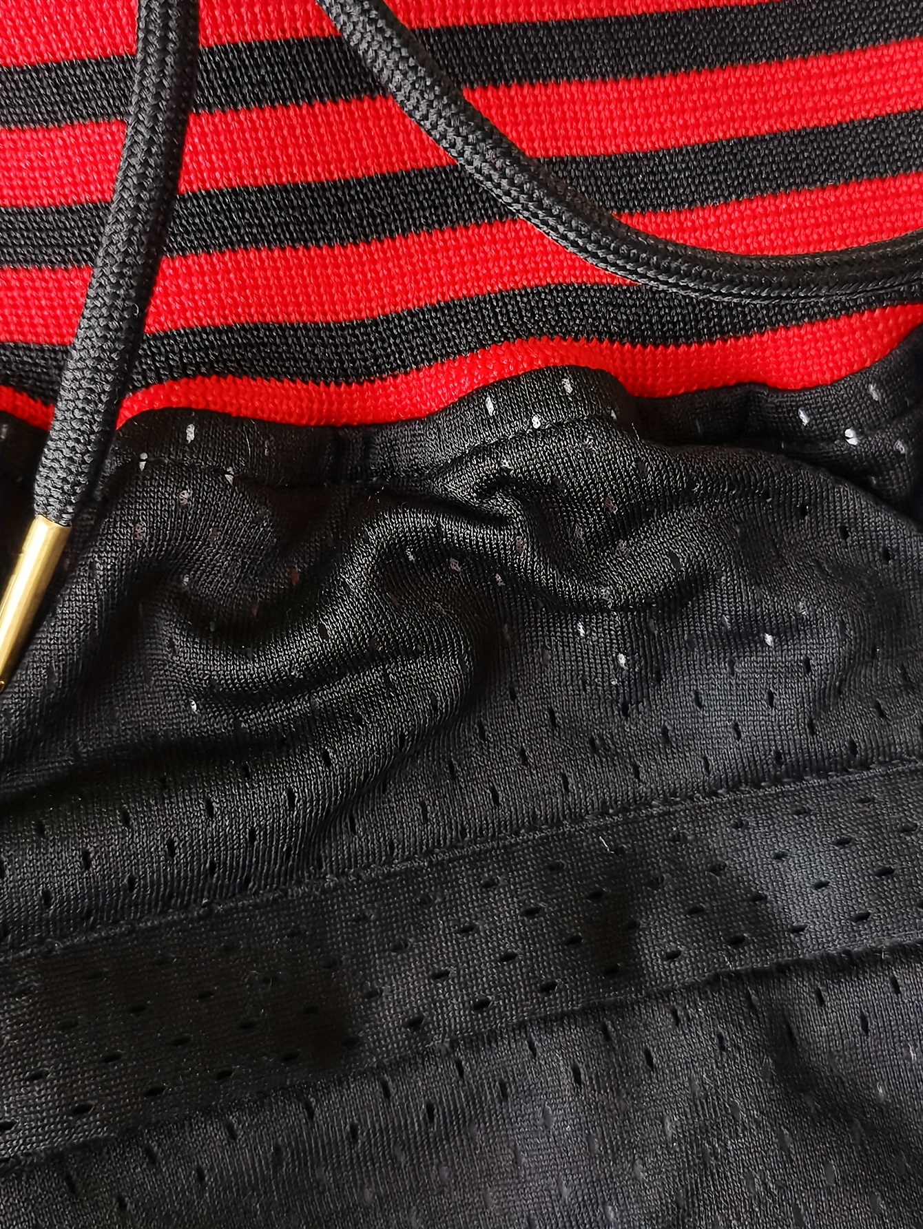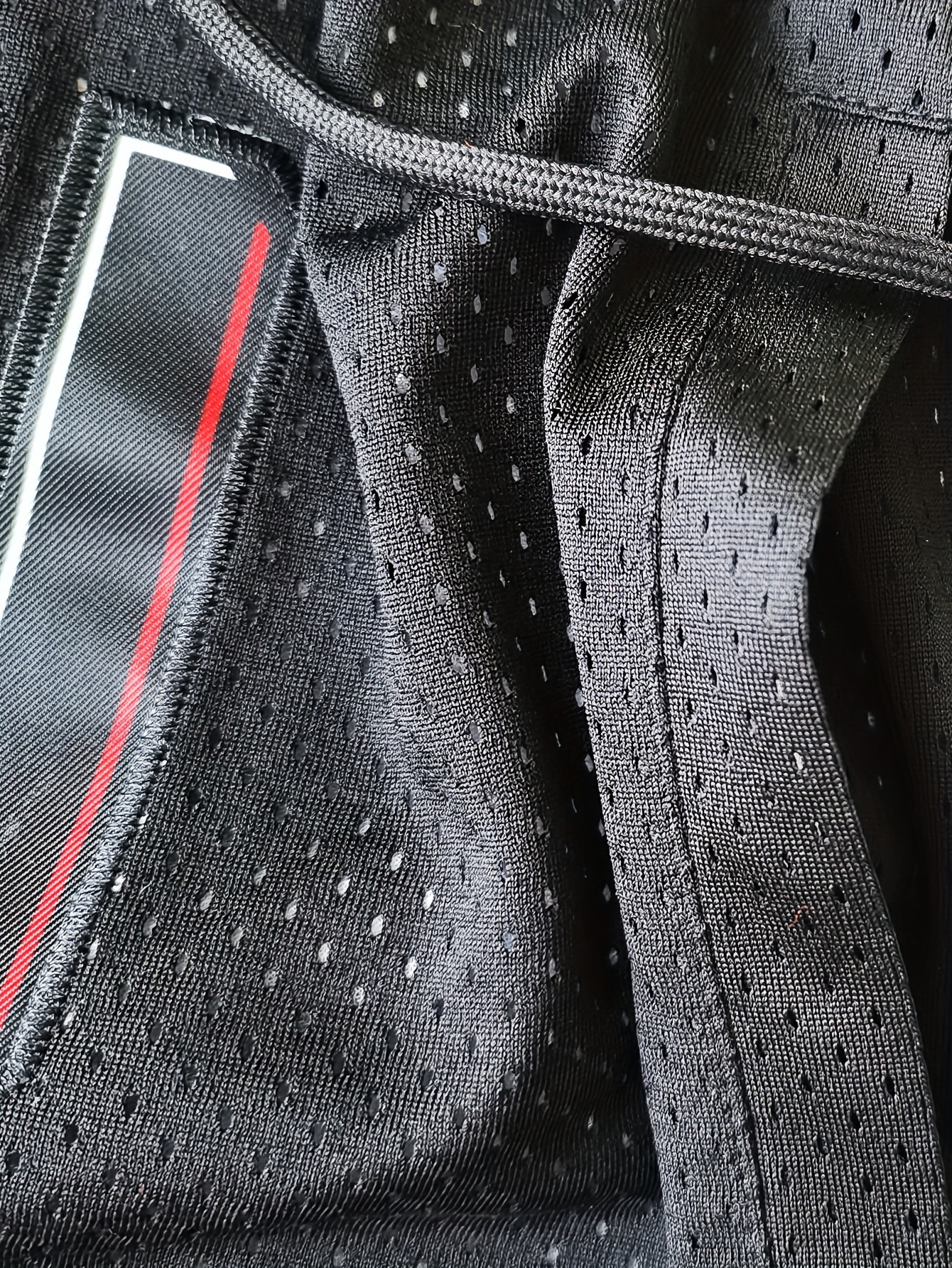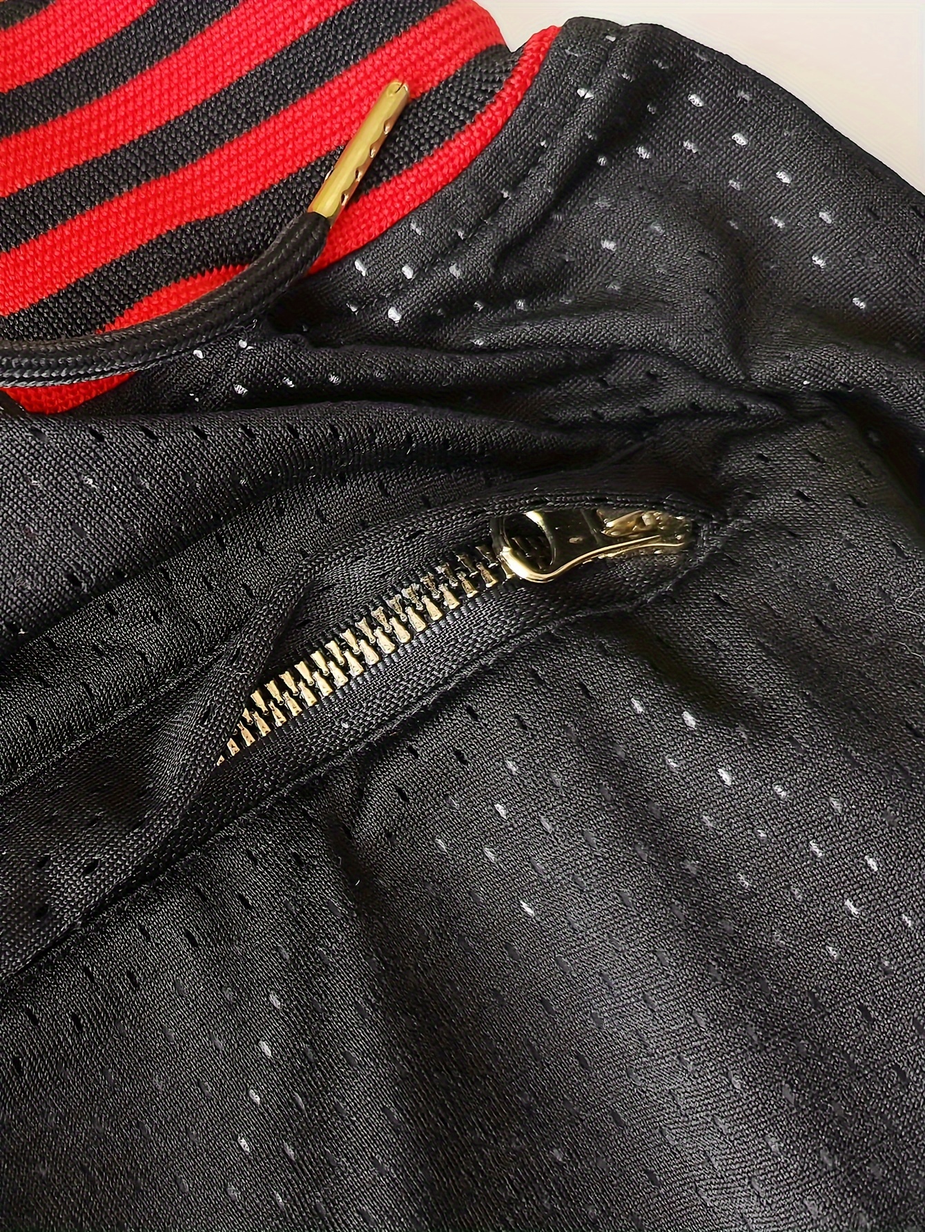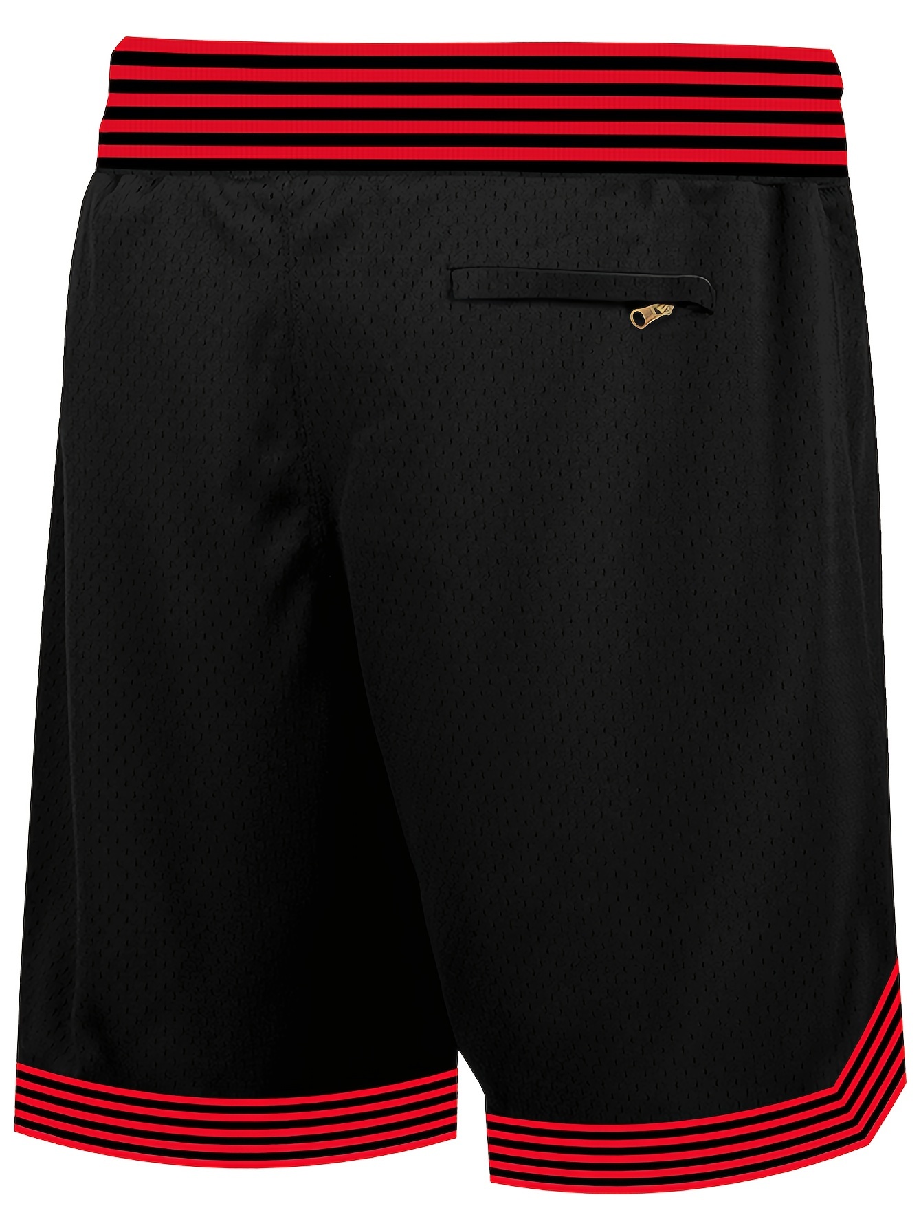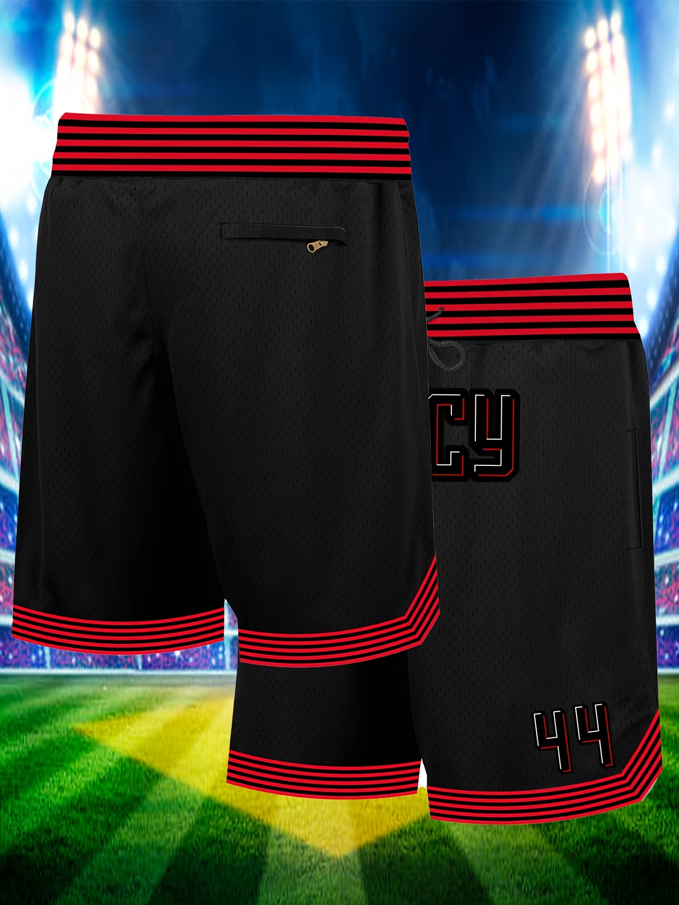 1pc Men'S Basketball Shorts - Breathable Polyester Knit Fabric, Slight Stretch, Loose Fit, Embroidered Alphabet Pattern, Sports Style for Training & Competition, Four Seasons - Black with Red Trim