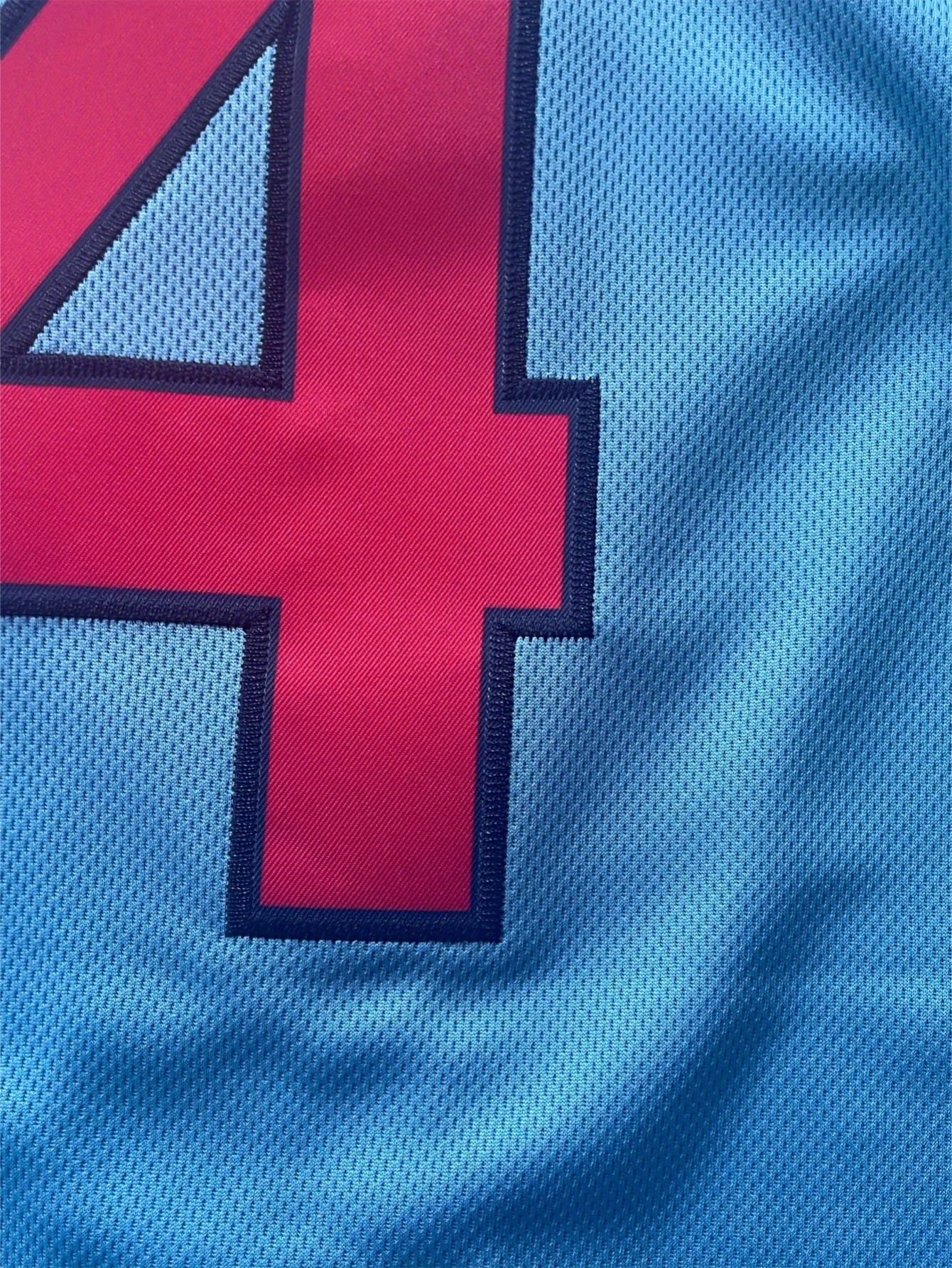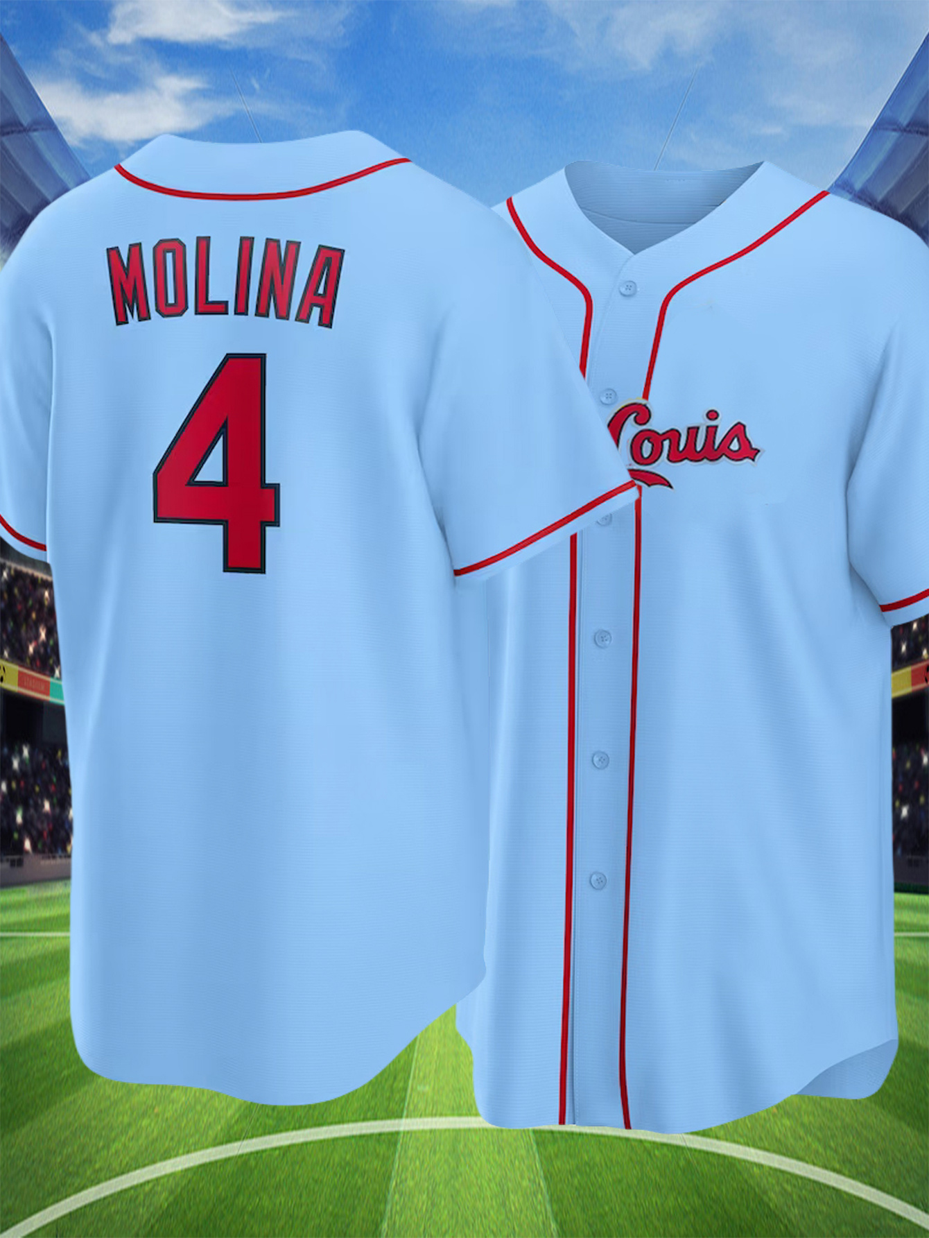 Men's Retro Embroidered Baseball Jersey - Breathable Button-Up V-Neck #4 Light Blue & Red Trim, Loose Fit for Training, Games & Casual Wear, All-Season Machine Washable Sportswear