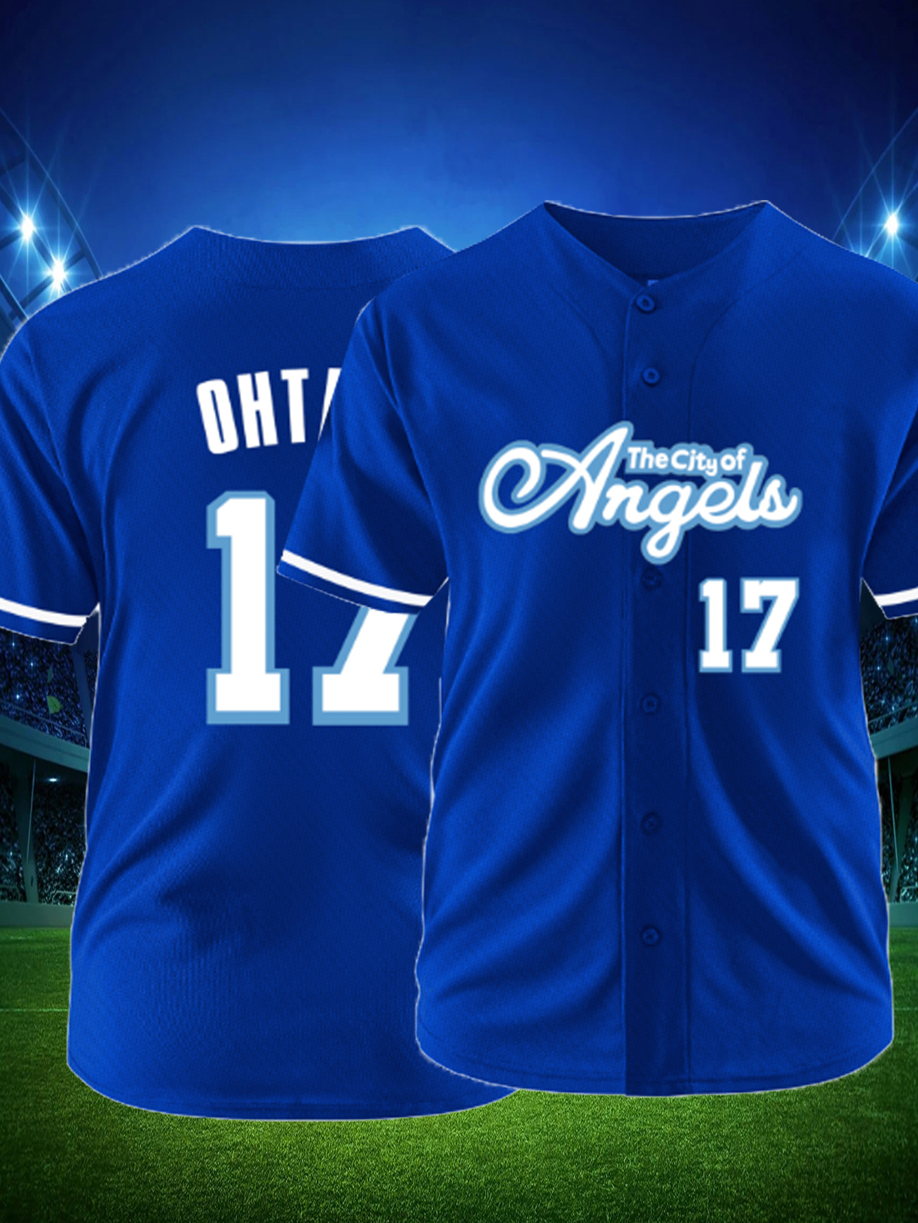 Men's Royal Blue #17 Baseball Jersey - Retro Embroidered "City of Angels" Design, Breathable Button-Up V-Neck, Loose Fit for Training, Games & Casual Wear | All-Season Comfort, Machine Washable, Outdoor Clothing | Sporty Look | Embroidered Detailing