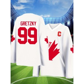 Men's White # 99 Ice Hockey Sweatshirt, Loose Embroidered Long Sleeves, Sporty, Fashionable And Casual, Breathable On The Street