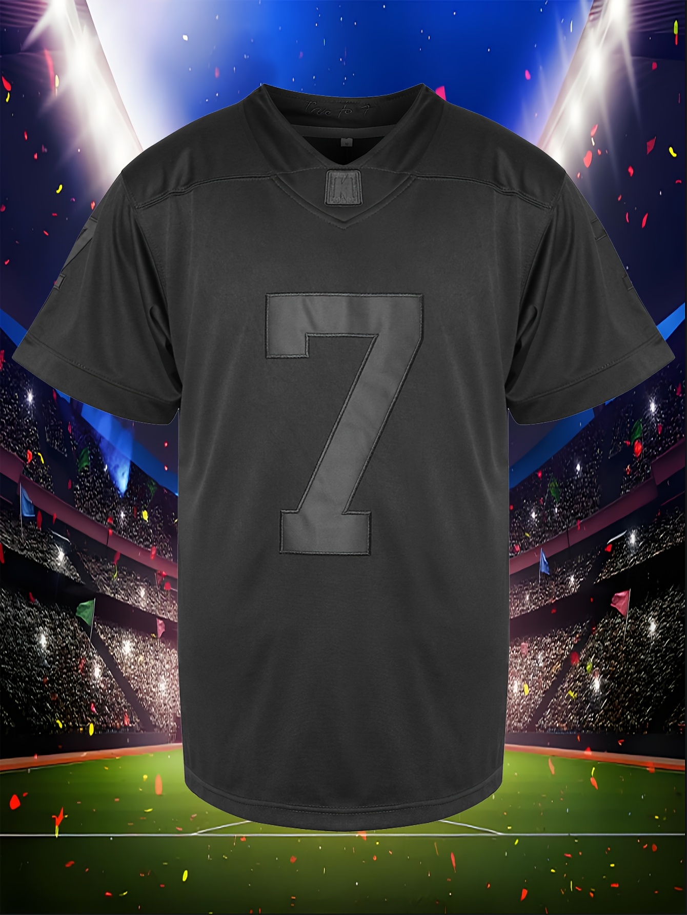 Men'S American Football Sweatshirt, # 7 Black Breathable V-neck Embroidered Polyester Sportswear, Suitable For Street, Team Sports, Beach, Loose Knitted Fabric, S-3XL