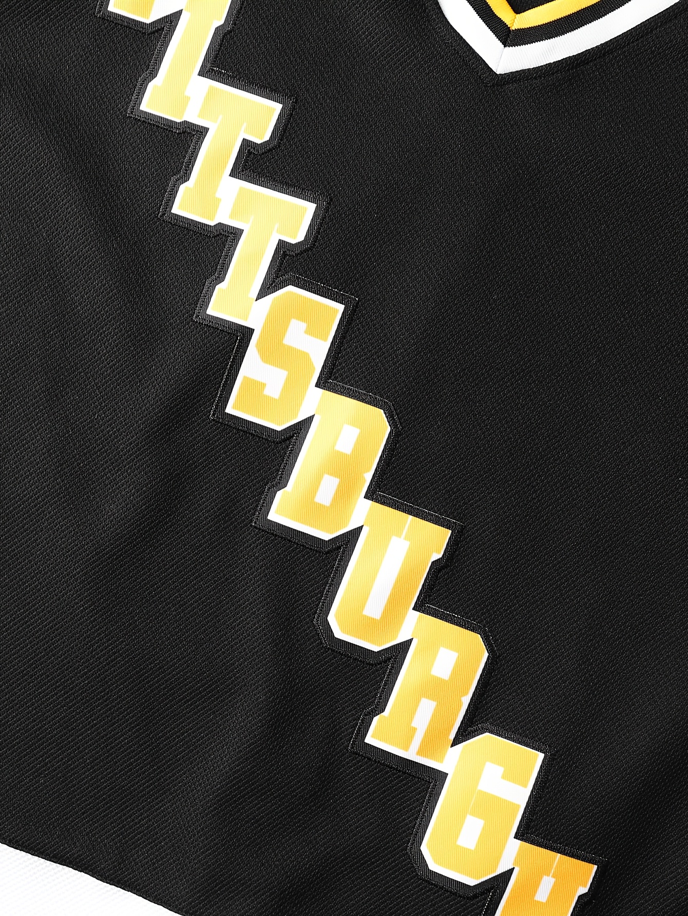 Men'S American Ice Hockey Sweater # 87 Black Ice Hockey Sweater Breathable V-neck