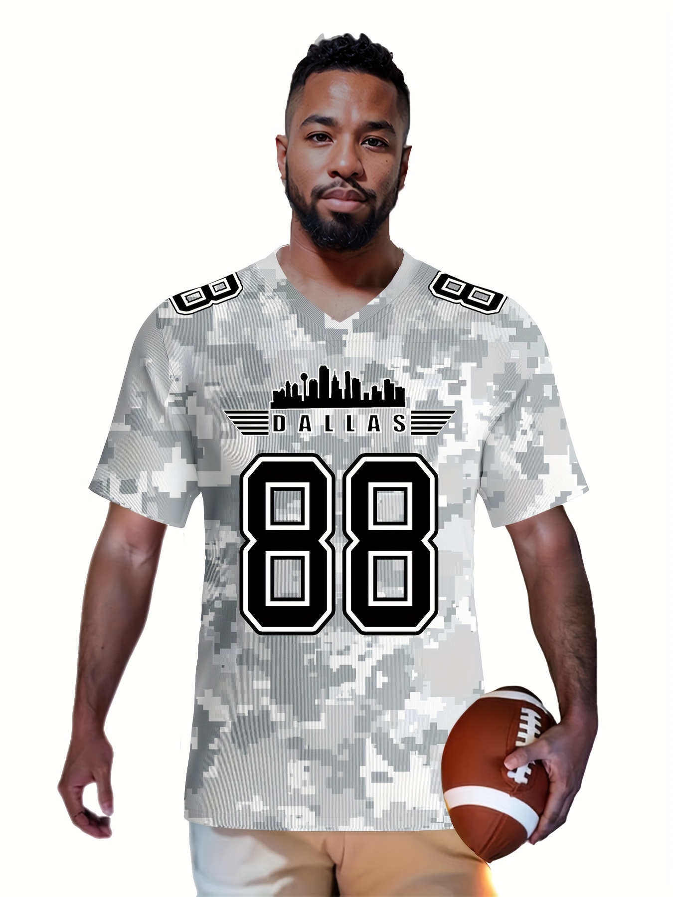 Men's Arctic Camo Dallas #88 Polyester Football Jersey, Men V-Neck Sports Shirt With Slight Stretch, Breathable Casual Knit Fabric For All Seasons, Loose Fit Adult, Fans Gift Men, For Training Competition Festival Party Outdoor Sports