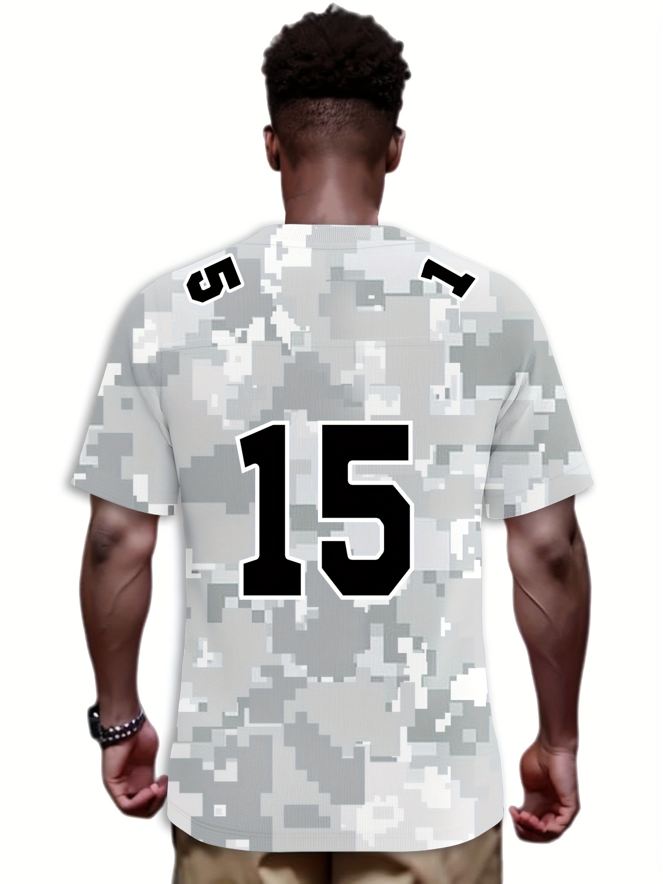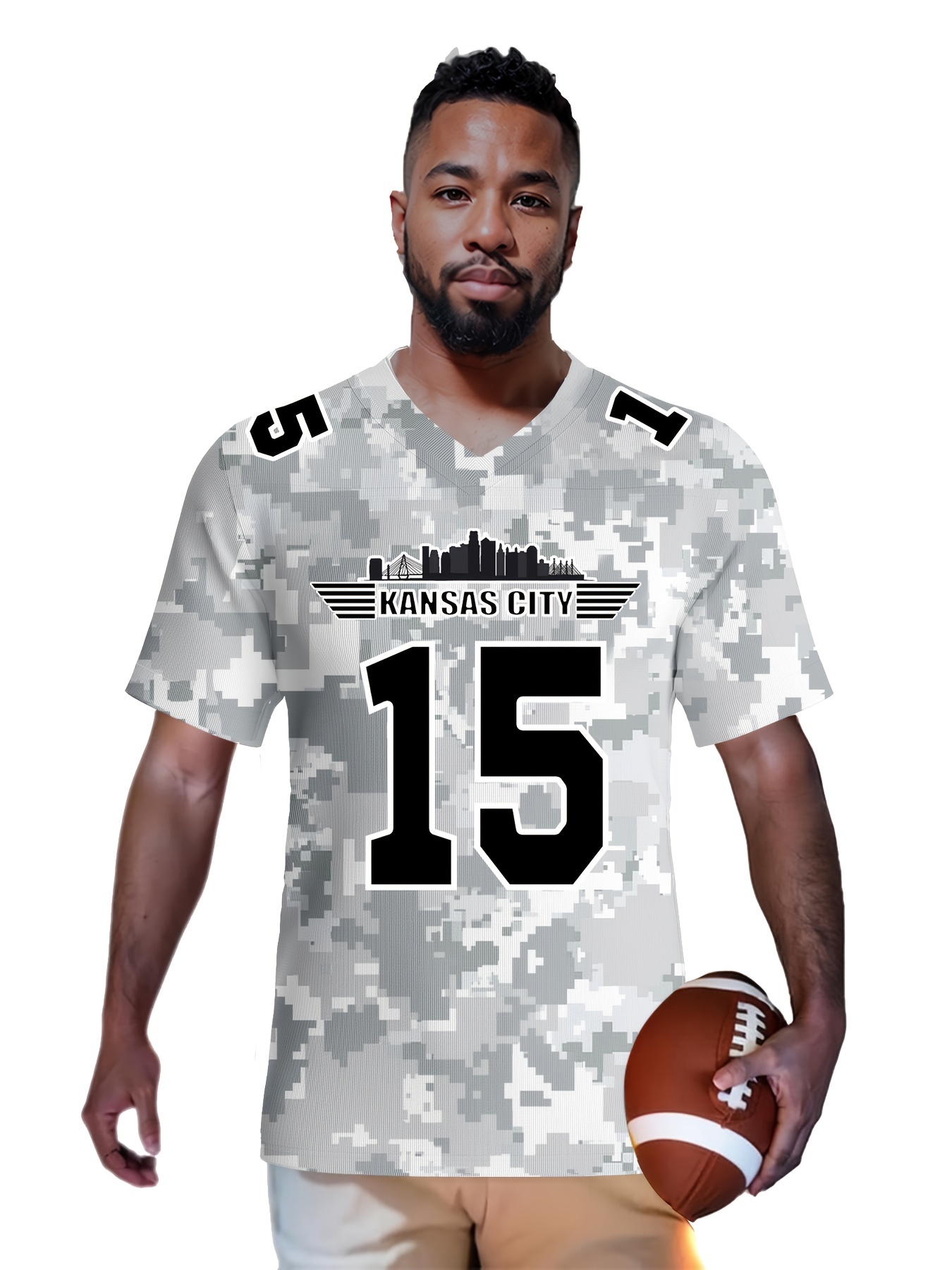 Men'S Arctic Camo Kansas City #15 Polyester Football Jersey, Men V-Neck Sports Shirt With Slight Stretch, Breathable Casual Knit Fabric For All Seasons, Loose Fit Adult, Fans Gift Men, For Training Competition Festival Party Outdoor Sports