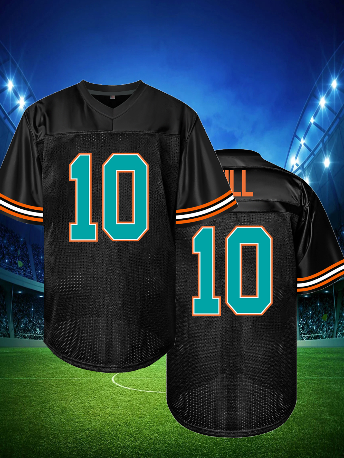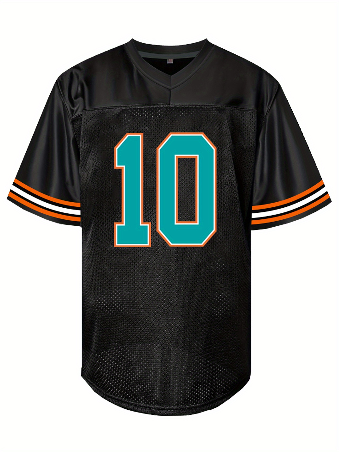 Men'S Black # 10 Rugby Jacket Loose Embroidered Sports, Fashionable, Casual, Street Breathable Rugby Top