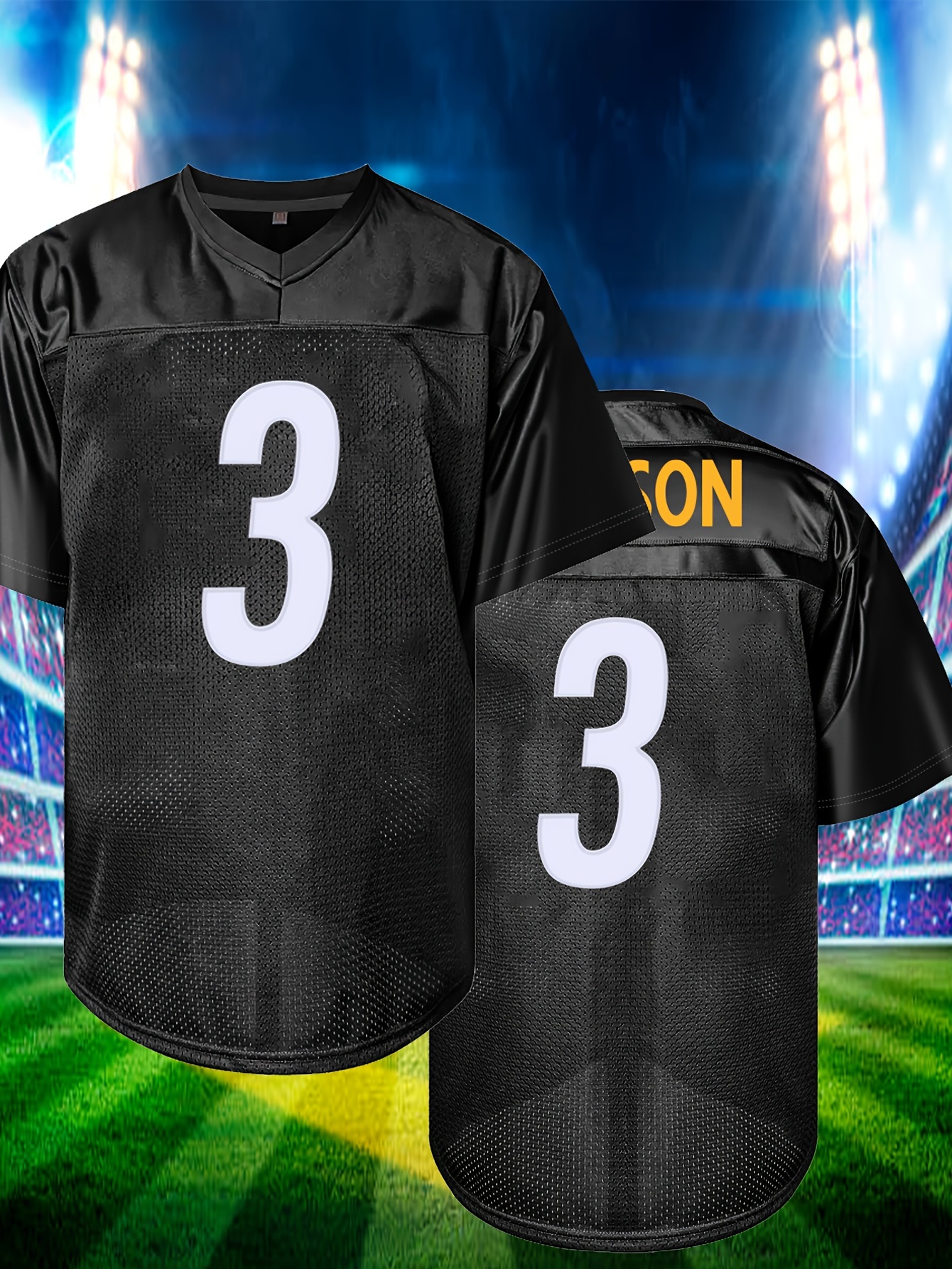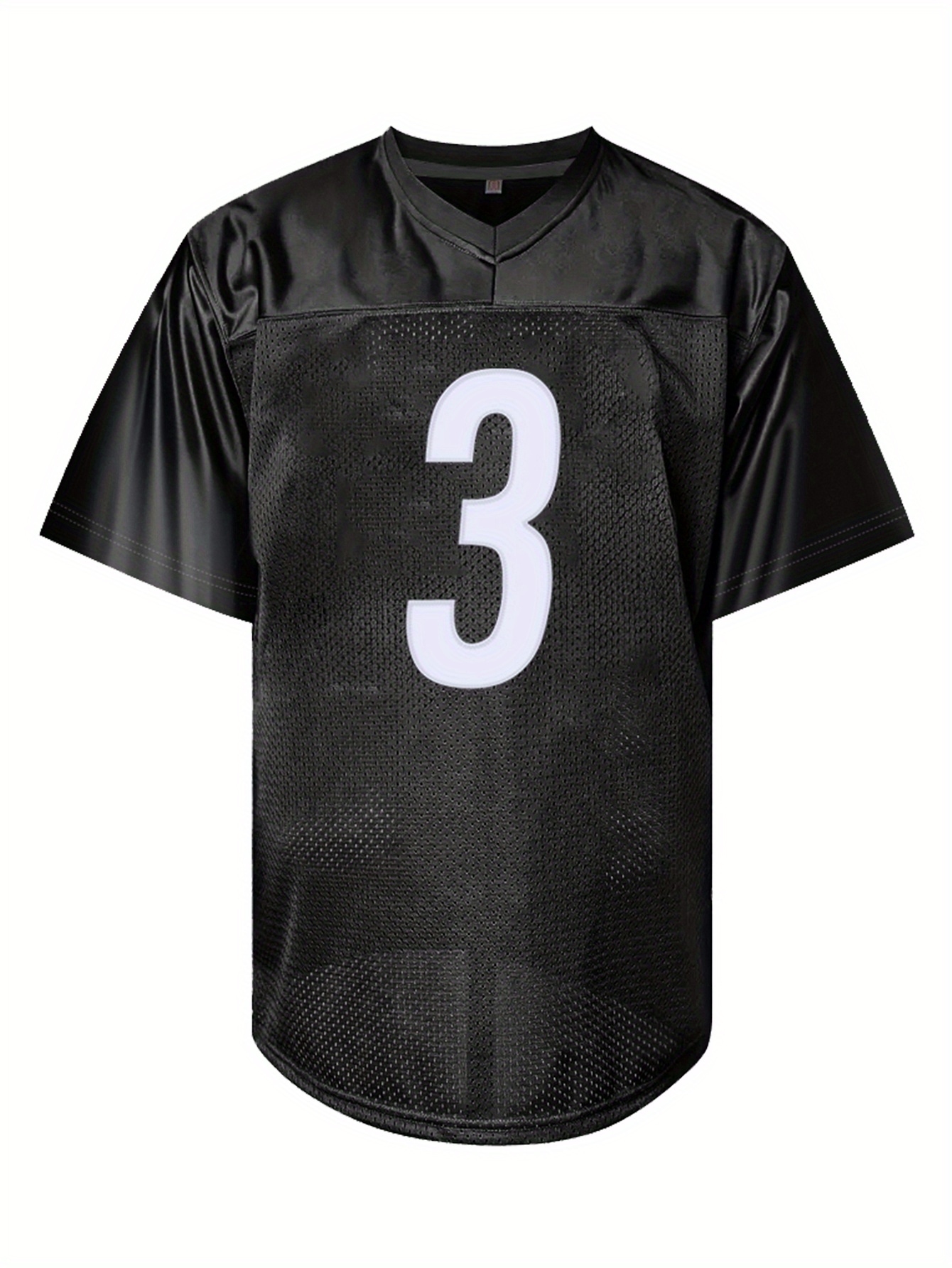 Men'S Black # 3 Rugby Jacket Loose Embroidered Sports, Fashionable, Casual, Street Breathable Rugby Top