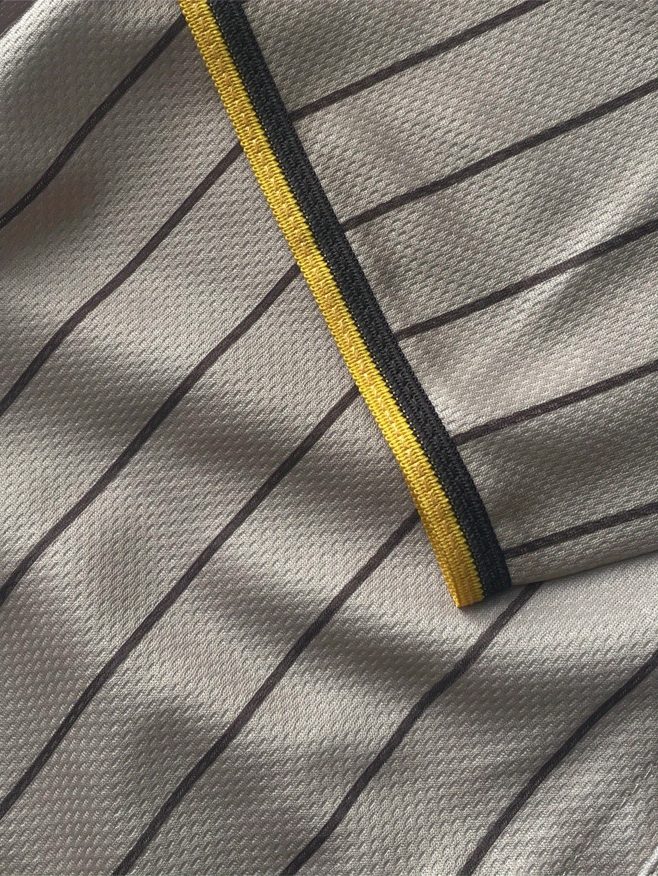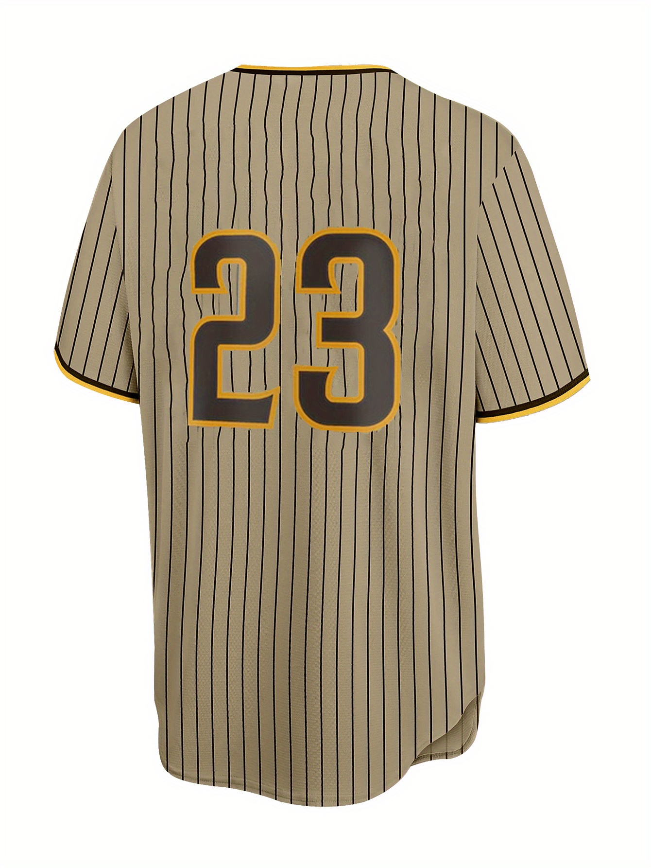 Men's Brown Striped #23 Baseball Shirt - Loose Fit Embroidered Sportswear with V-Neck & Button Closure, Breathable Fabric for Casual Streetwear, Outdoor Activities & All-Season Comfort (Adults & Teens), Sports Apparel, Sporty Design, Embroidered Detailing