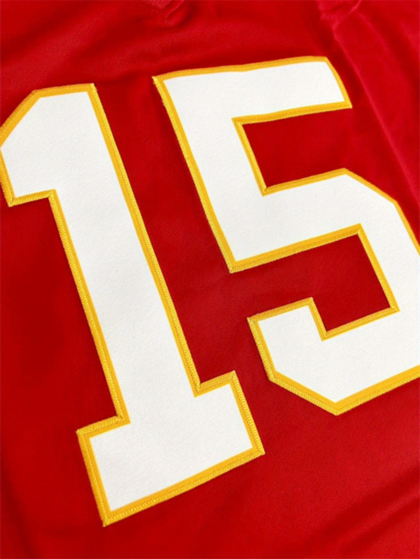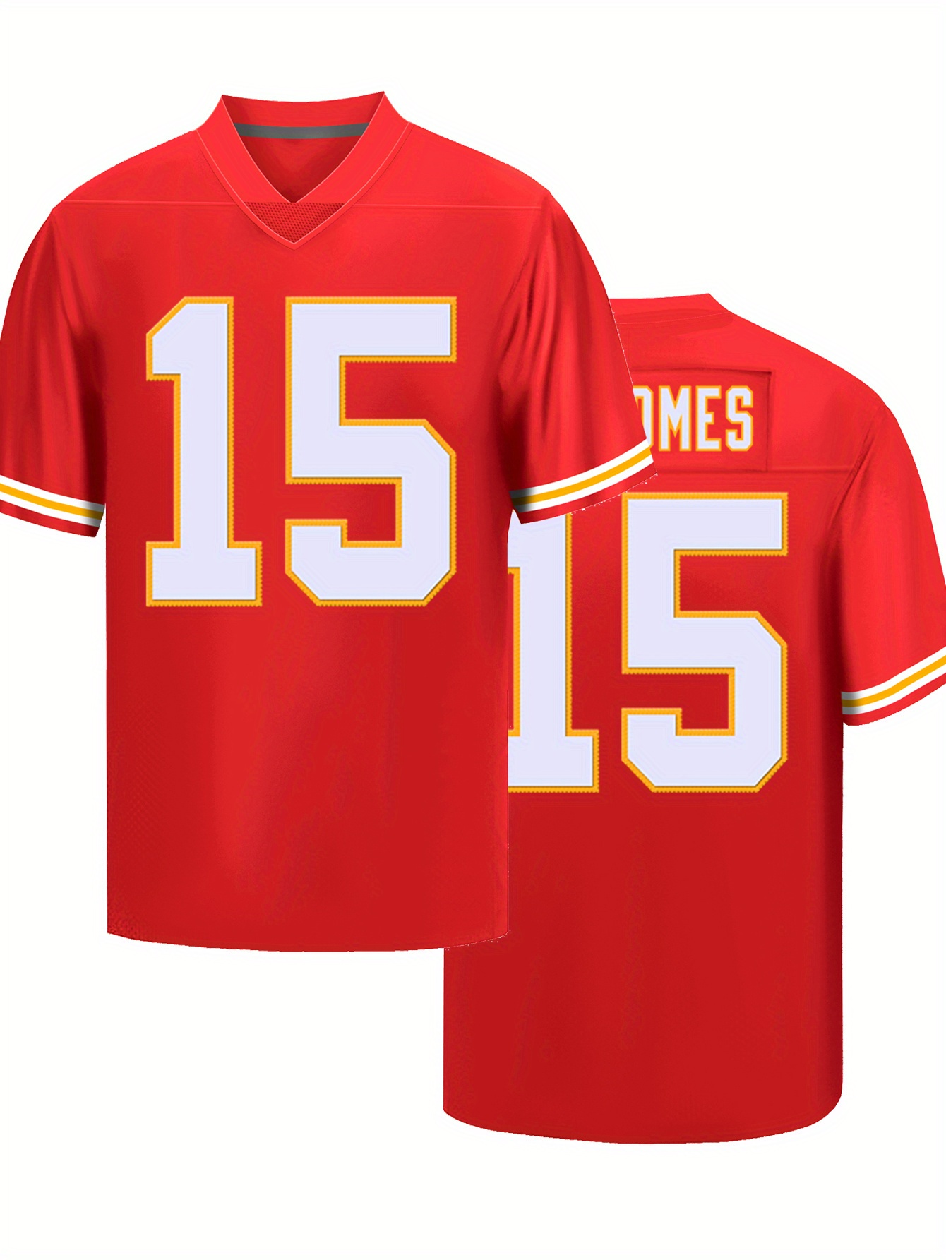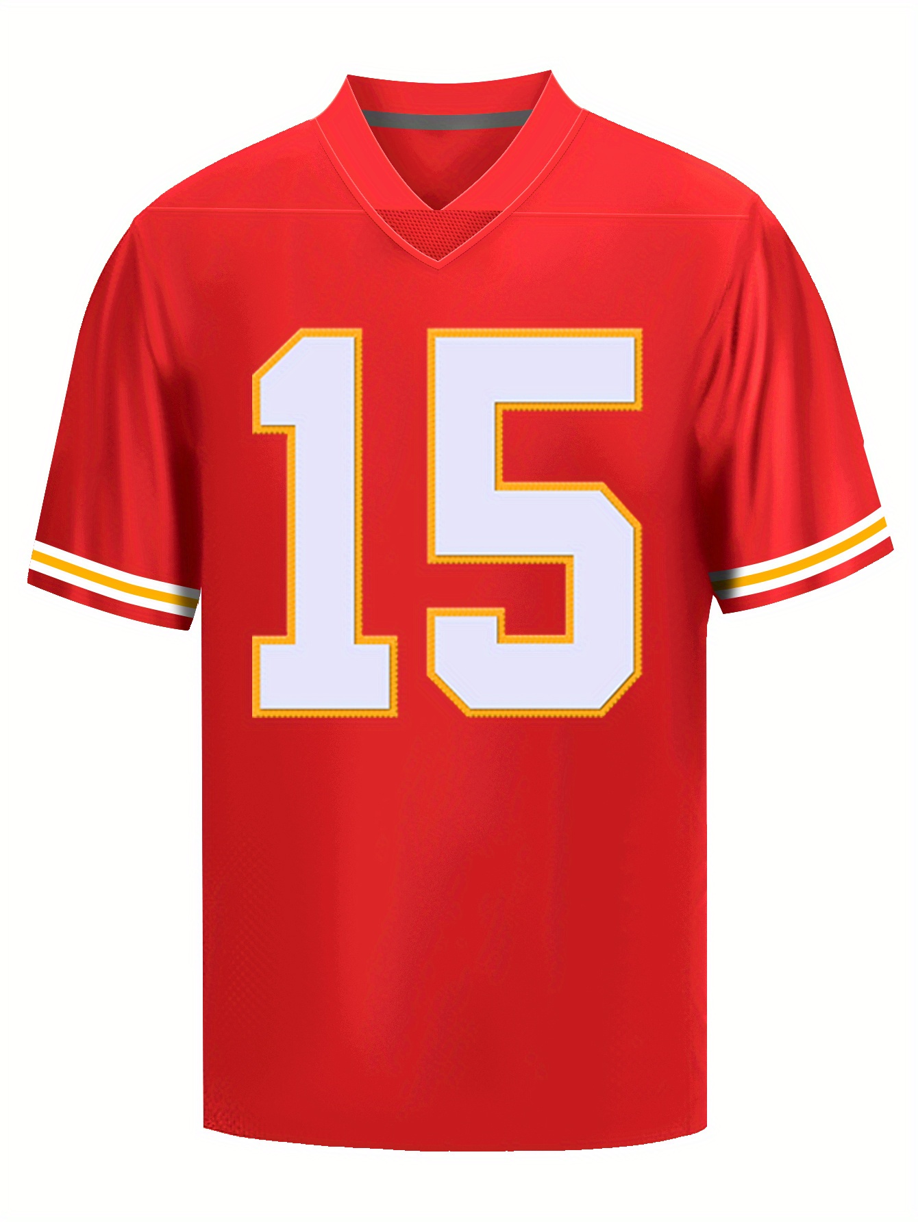 Men's Red #15 Embroidered Rugby Jersey - Loose Fit Breathable V-Neck Top for Sports, Casual & Streetwear | All-Season Machine Washable Athletic Shirt, Outdoor Clothing, Sporty Style, Embroidered Detailing